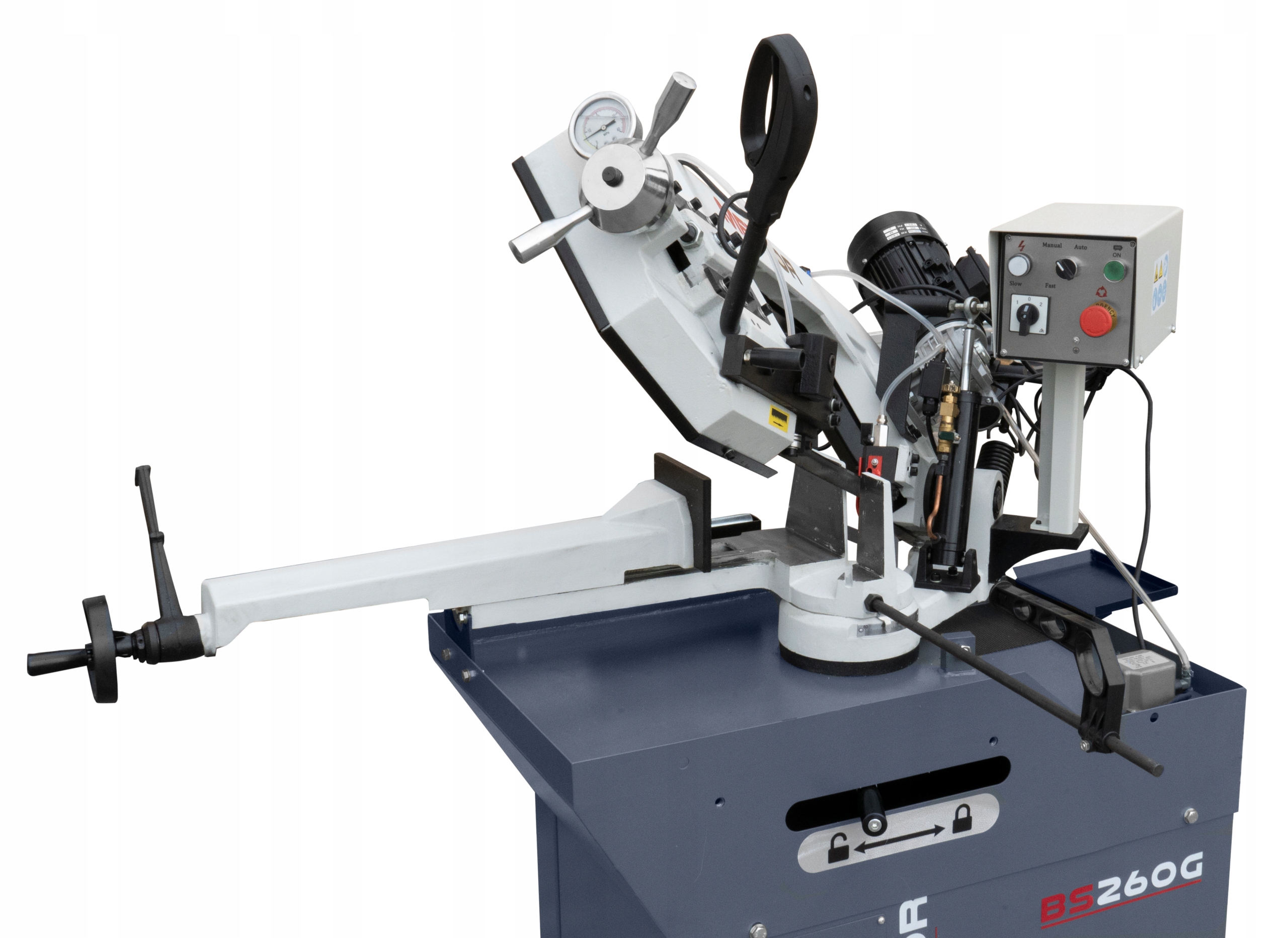 Ленточно-отрезной станок METCOR BS260G благодаря гидравлическому приводу, охлаждению и поворотному рычагу до 60° в сочетании с пильными полотнами известной немецкой компании Rontgen широко используется во всех слесарных мастерских, где важны точность, качество и скорость резки.