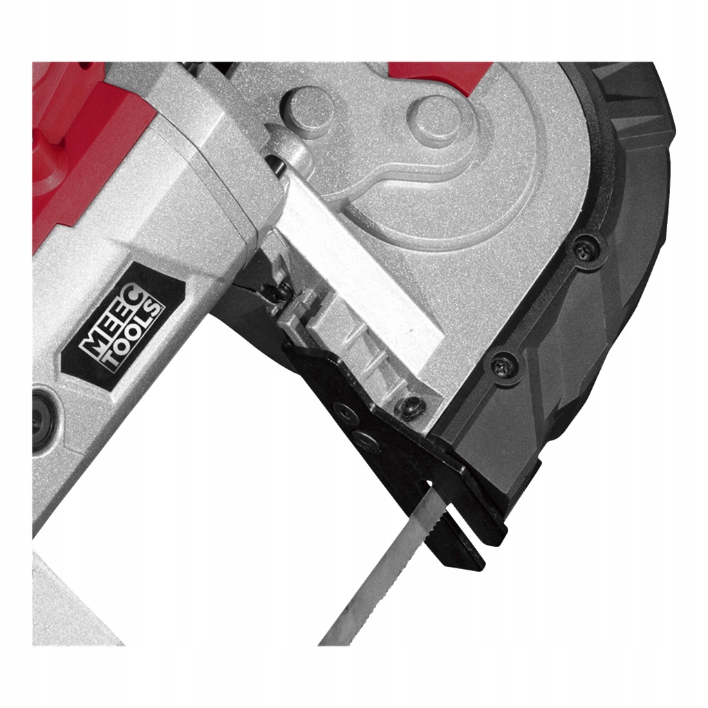 Ленточная пила по металлу Meec Tools — полезный инструмент для резки металлических профилей. Он оснащен мощным двигателем мощностью 1100 Вт, оснащен прорезиненными ручками и встроенным светодиодным фонарем.