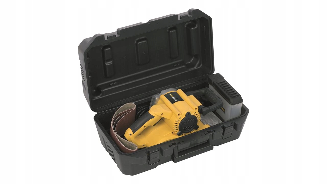 Натяжение ремня легко регулируется с помощью регулировочного винта, а переднюю крышку можно поднять для шлифовки труднодоступных мест. Мягкая ручка как на основной части, так и на вспомогательной рукоятке. Вспомогательная рукоятка регулируется так, что вы сможете удобно держать устройство в любом положении. Мельница поставляется в удобном кейсе.
