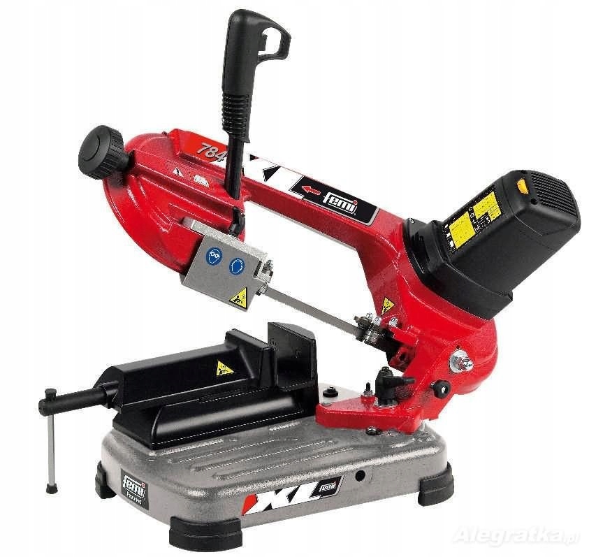 Профессиональная ленточная пила итальянской компании Femi, модель 784 XL, предназначенная для резки стали и алюминия. Устройство оснащено мощным двигателем 1200 Вт, обеспечивающим удобство использования даже при резке элементов диаметром до 120 мм.