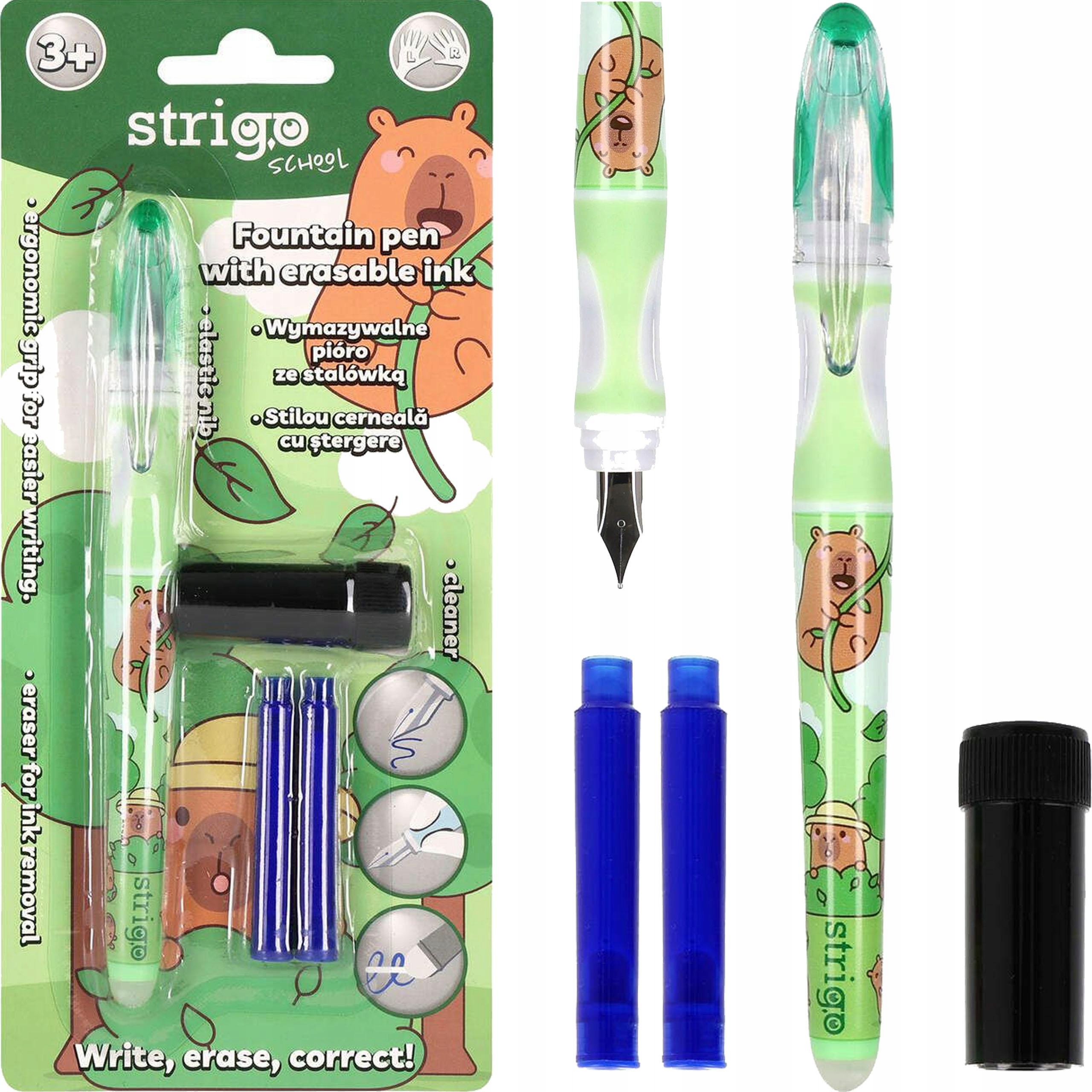 Ручка Strigo для обучения детей письму, стираемое перо зеленого цвета капибары
