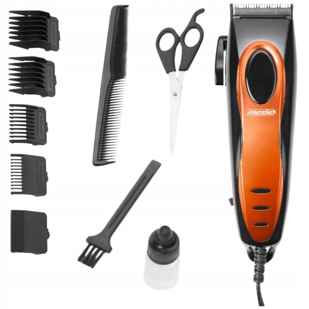 Машинка для стрижки волос Mesko имеет прочные стальные лезвия и титановую головку, обеспечивающие длительный срок эксплуатации, а также в комплект входят: