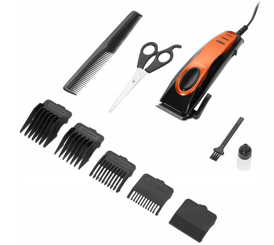 - Мотор 15 Вт с насадками-гребенками и регулируемым роликом длины стрижки обеспечивает комфортную, бесшумную и профессиональную работу.