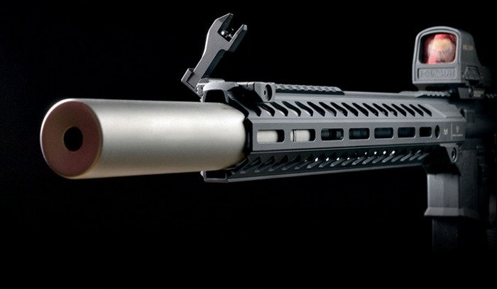 Отверстия для портов QD, расположенные с обеих сторон, позволяют использовать подвесы с системой быстрого разъединения. Внутренний диаметр рукоятки был выбран с учетом большинства стандартных глушителей, а также дульного устройства Oppressor, разработанного Strike Industries. Более того, рельсовая система позволяет легко устанавливать как механические, так и оптоэлектронные прицелы.