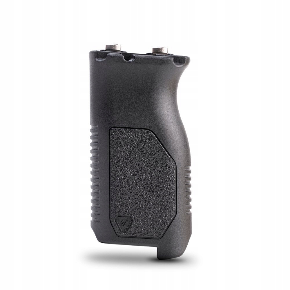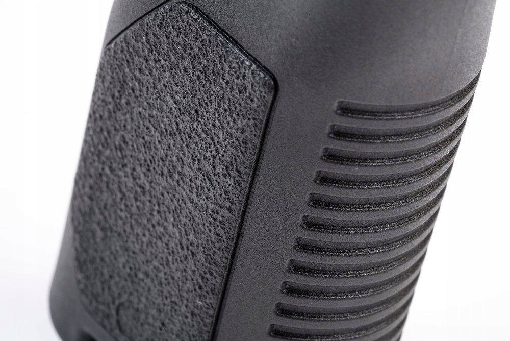 Угловая вертикальная ручка изготовлена из прочного полимера с нескользящей текстурой по бокам. Версия Long дополнительно имеет профилированную нижнюю часть, которая позволяет оружию устойчиво стоять, например, в стрелковом положении.