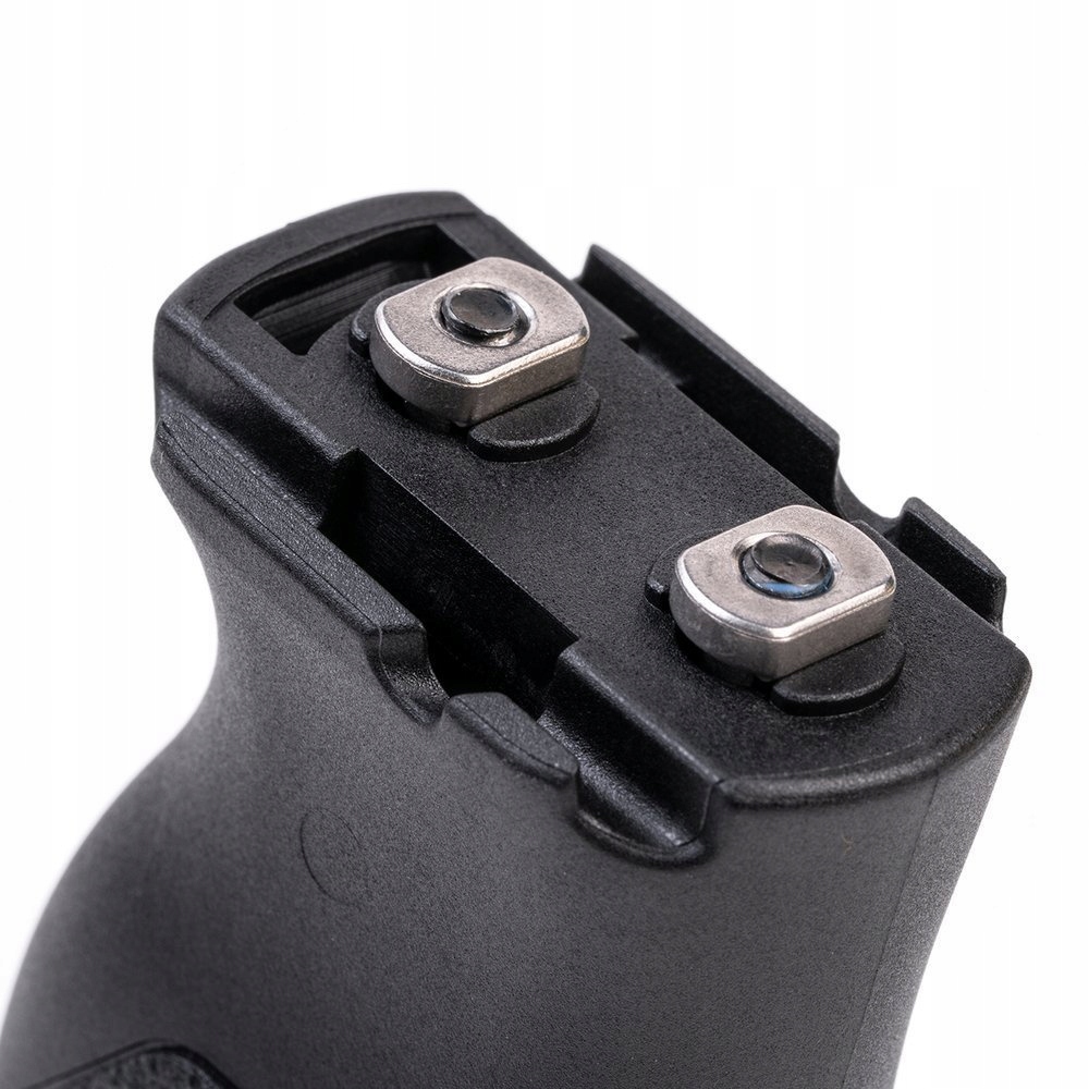 Угловая вертикальная ручка изготовлена из прочного полимера с нескользящей текстурой по бокам. Версия Long дополнительно имеет профилированную нижнюю часть, которая позволяет оружию устойчиво стоять, например, в стрелковом положении.