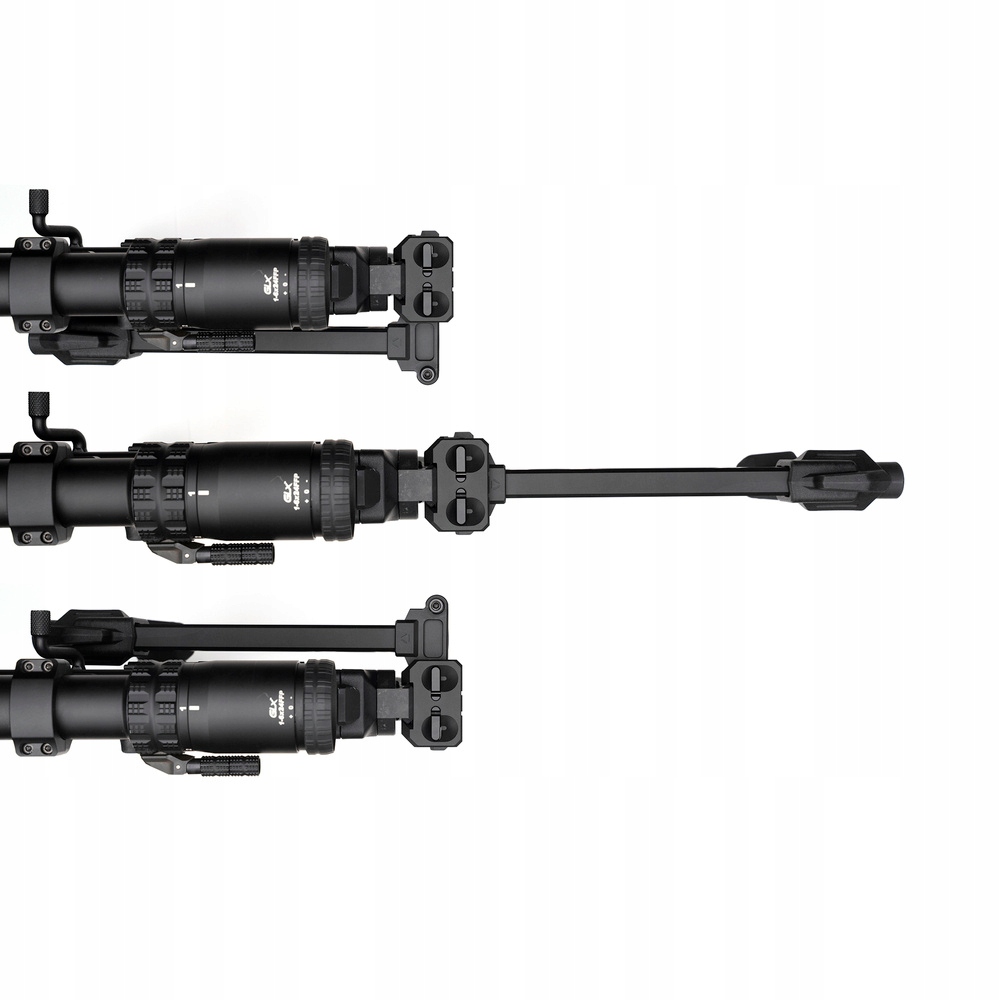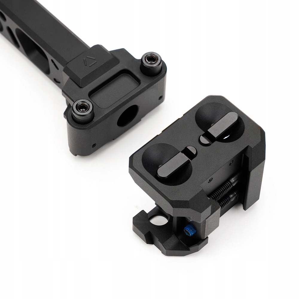 Конструкция приклада обеспечивает высокую эргономику и хорошую поддержку, что важно для правильного захвата цели. Отличительной особенностью этого приклада является двусторонняя система складывания. Он позволяет складывать приклад, когда он не используется, в левую или правую сторону, в зависимости от потребностей пользователя. Простая система блокировки предотвращает случайное складывание или скольжение.