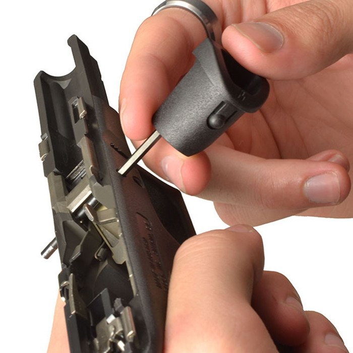 Полимерный аксессуар для полноразмерных и компактных пистолетов Glock Gen 3, крепящийся в отверстие в рукоятке оружия. В комплект входит отвертка/шестигранный ключ на 7/64 дюйма, которые также служат экстрактором штифтов и резервуаром для консервационного масла.