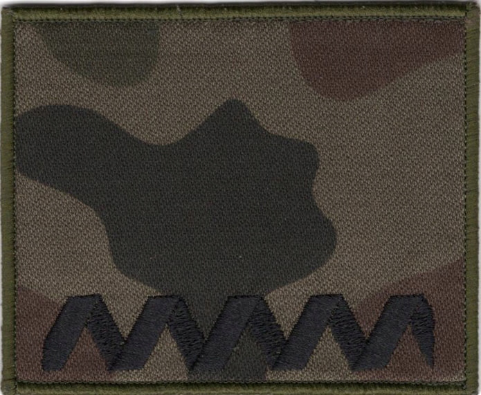 Нашивка, изготовленная в нашей мастерской с замаскированным обозначением звания стрелковое звание Стрелкового общества «Стржелец» Юзефа Пилсудского, вышито черной нитью на ткани US18 wz.93 лесная пантера, пришито по острой части на липучку (крючки) и обшито зеленой нитью на оверлоке Merrow. Размер: 85 мм х 70 мм.