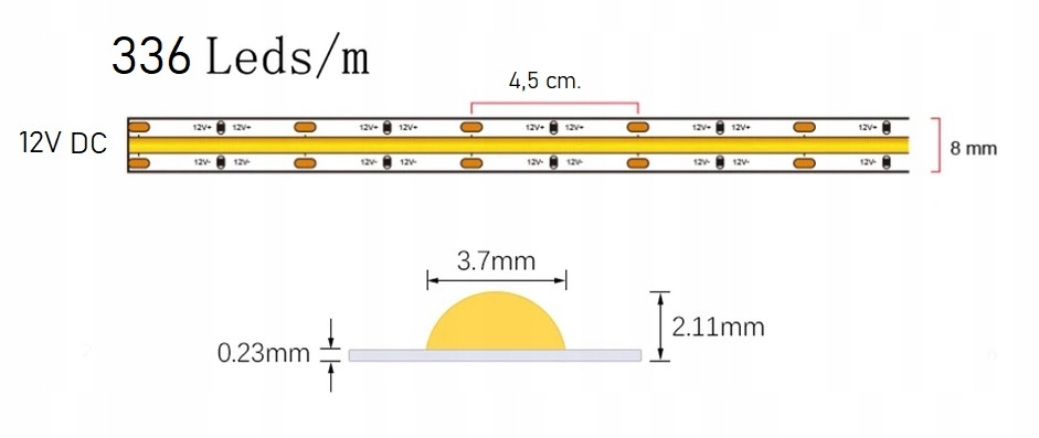 Светодиодные ленты COB – одно из последних решений в области линейного освещения. Основным преимуществом такого изделия является получение световой линии от самой полосы без использования дополнительного оборудования, такого как алюминиевые профили для полос со светорассеивающим покрытием. Получение линии света в профилях больше не требует соответствующего расстояния ленты от рассеивающего элемента и использования опаловых абажуров, теперь вы можете наслаждаться максимальным количеством света, используя матовые или даже прозрачные абажуры. Светодиодные чипы, используемые в изделии, имеют высокое качество, а их индекс цветопередачи CRI (Ra) составляет ? 90б>. Светоотдача также находится на высоком уровне: >80 Лм/Вт. Эту ленту также можно разрезать на более короткие отрезки, что упрощает сборку изделия.