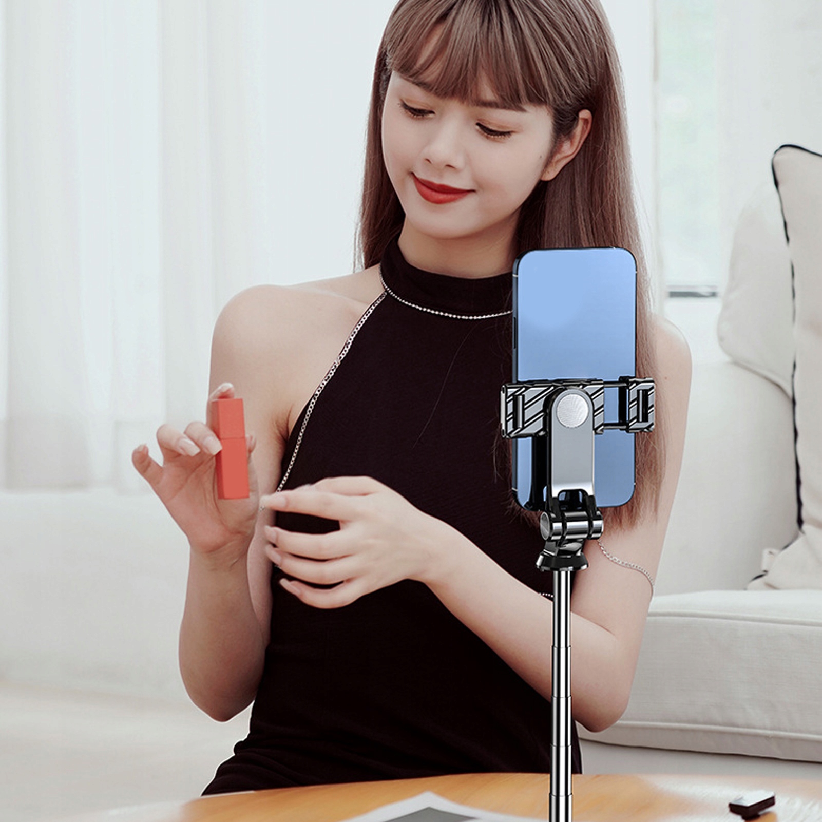 1. Стабильная съемка: штатив для селфи поддерживает горизонтальный и вертикальный экран. При назначении телефона горизонтальный экран подходит для просмотра сериалов и съемки селфи с несколькими людьми, а вертикальный экран подходит для потоковой передачи, фотосъемки и записи в реальном времени