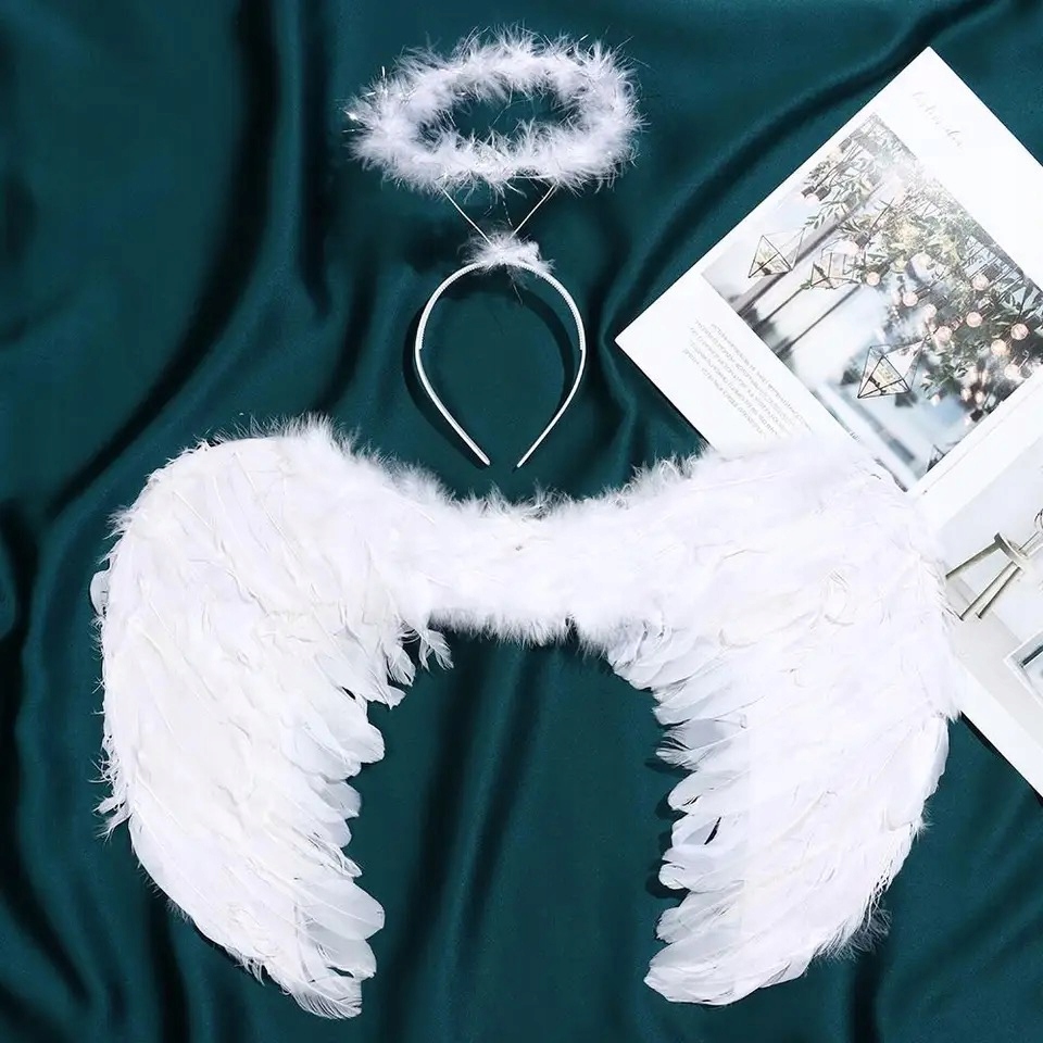 STRÓJ ANIOŁKA ANIOŁEK SKRZYDŁA AUREOLA RÓŻDŻKA ANIOŁ PIÓRA ZESTAW 3w1