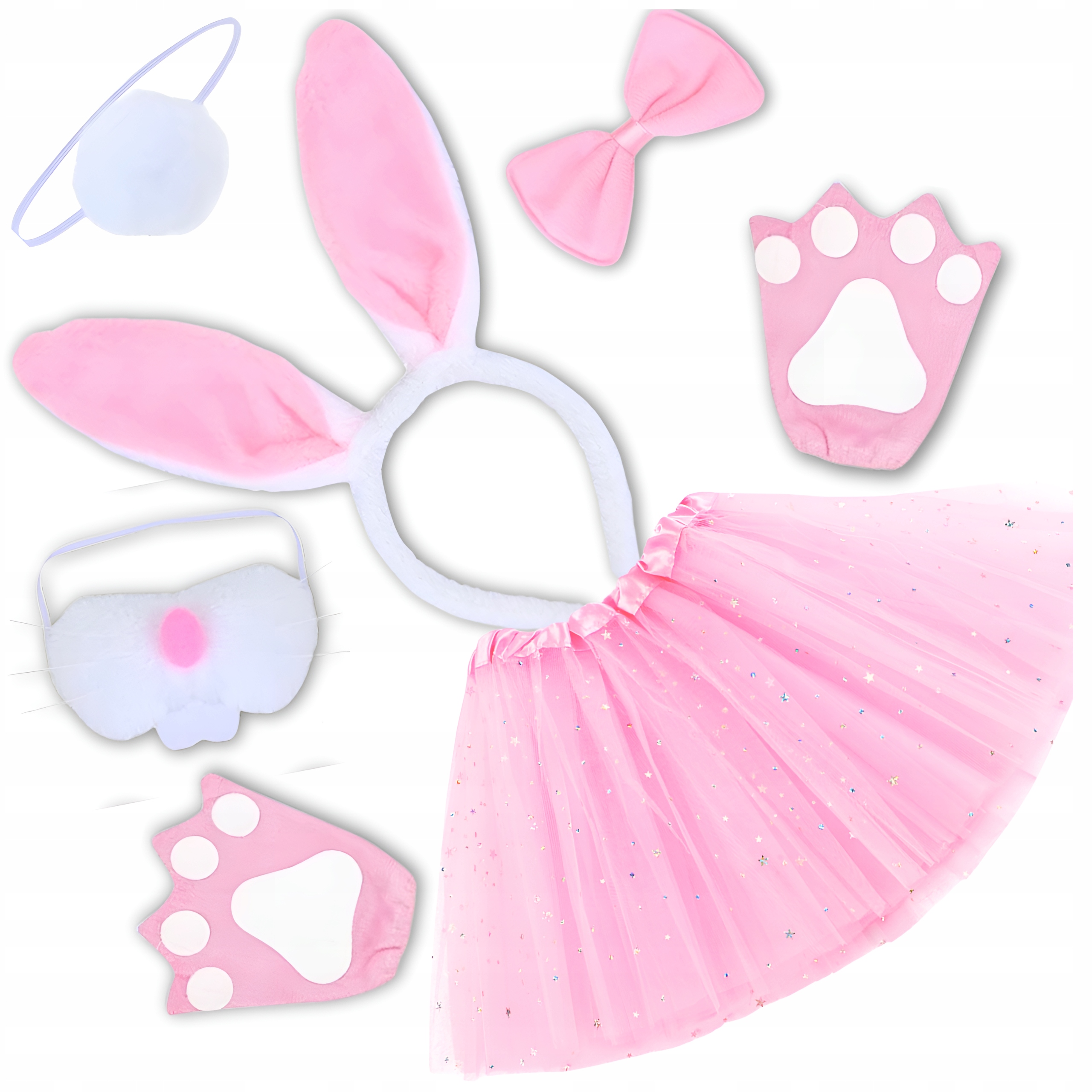 STRÓJ KRÓLIK KRÓLICZEK ŁAPKI OPASKA USZY NOS SPÓDNICZKA ZAJĄC PRZEBRANIE
