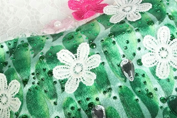 - Вырез горловины и короткие рукава выполнены из кружева,