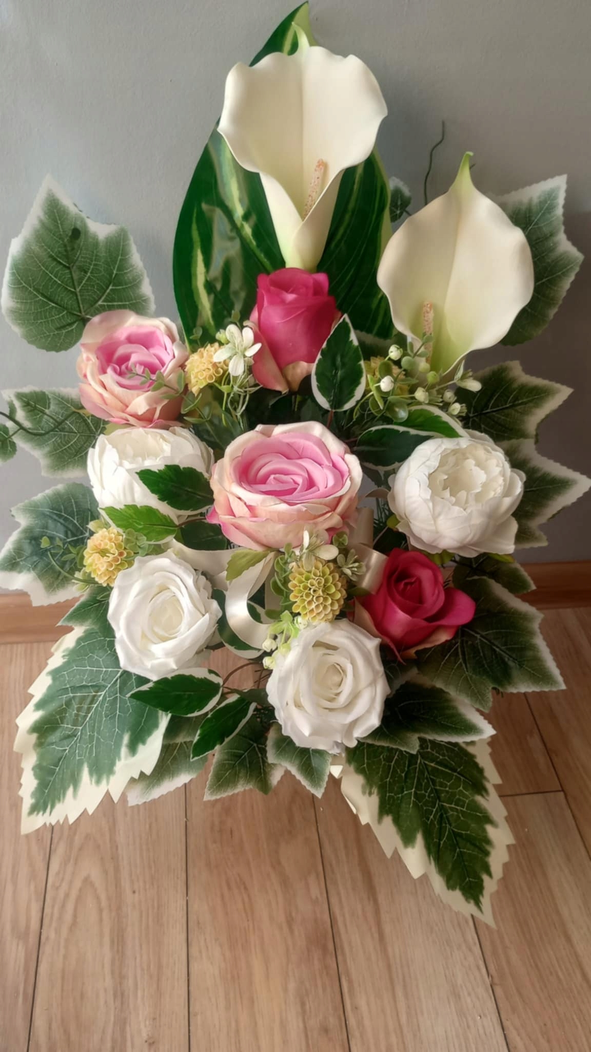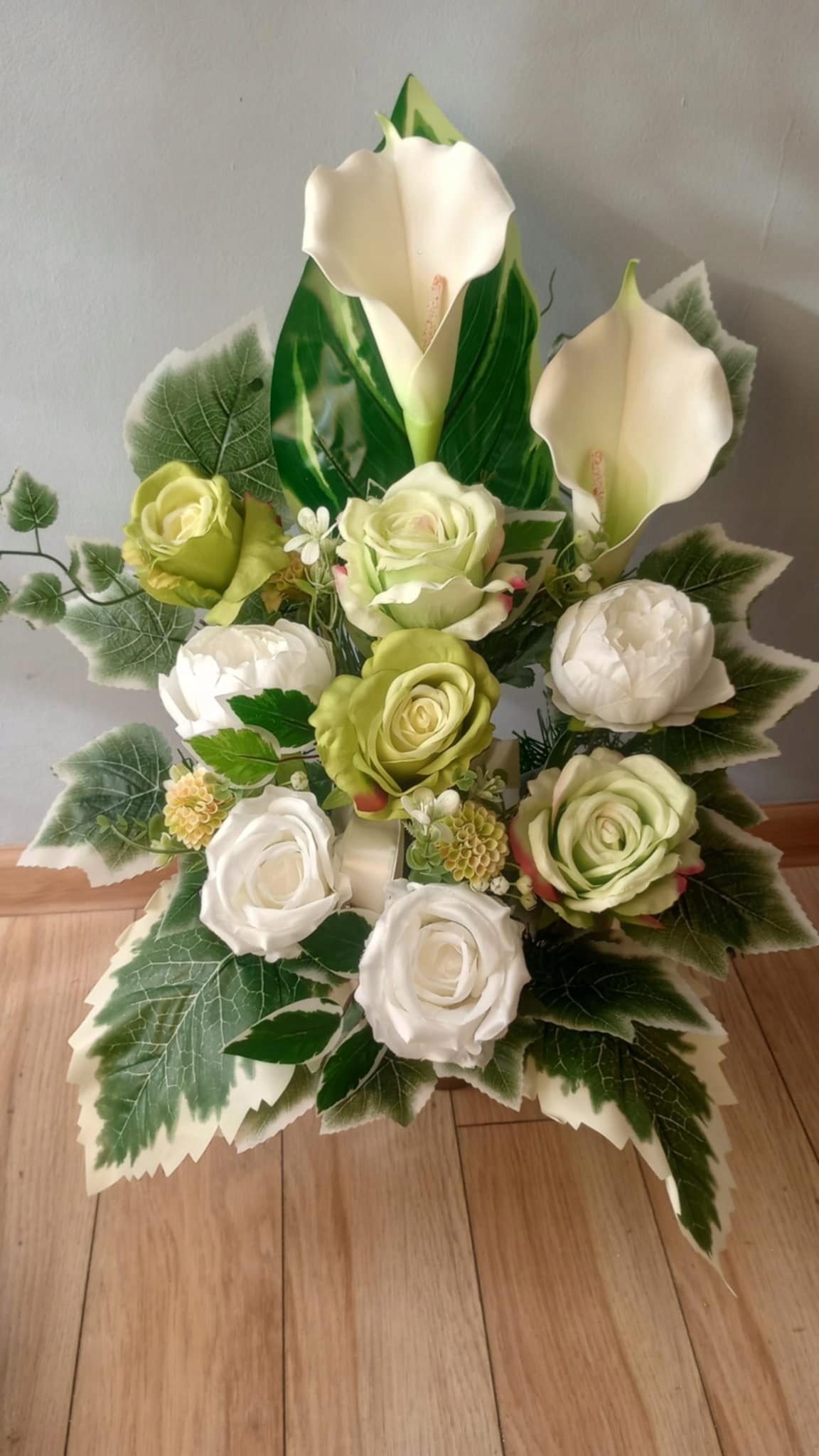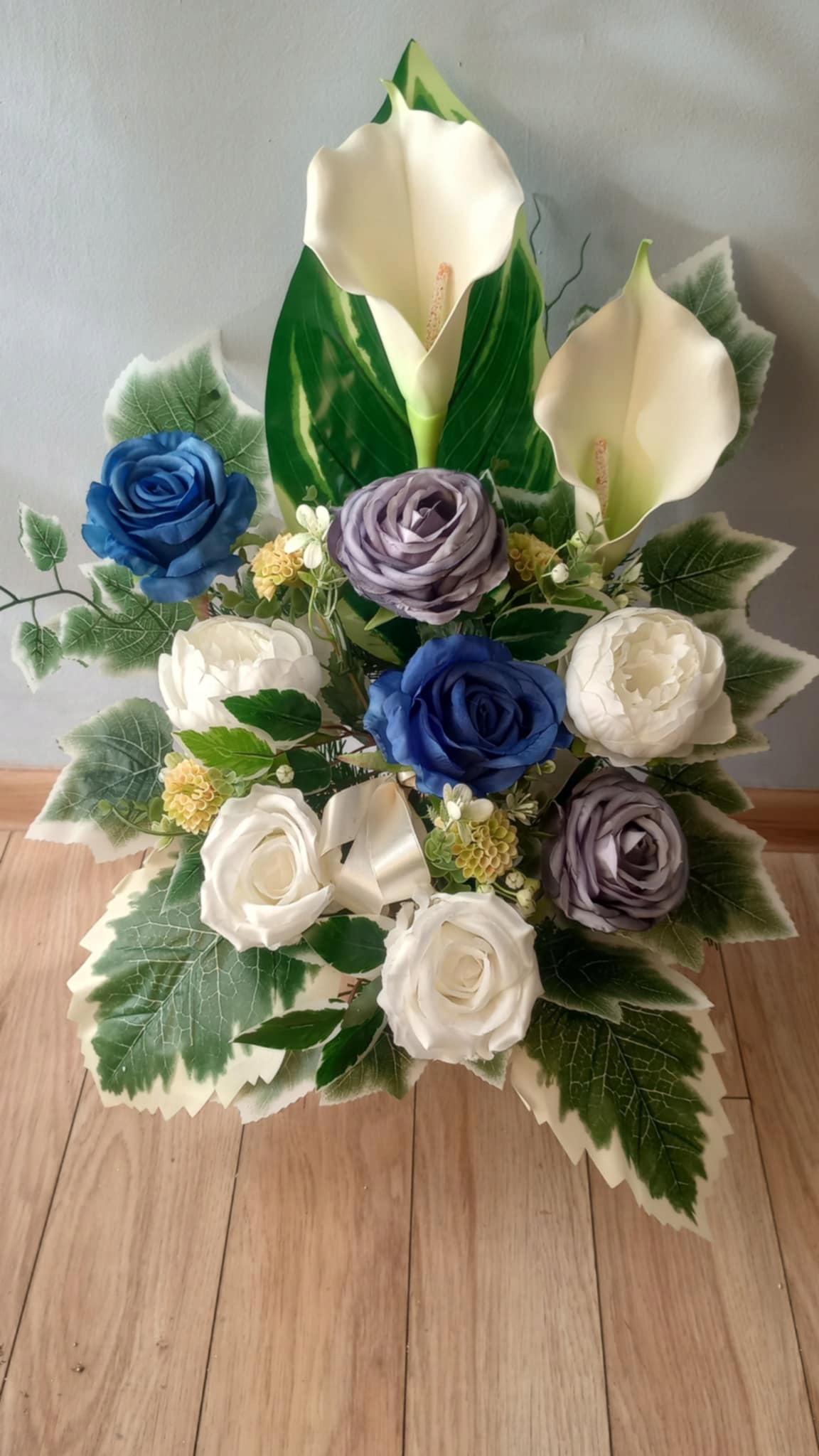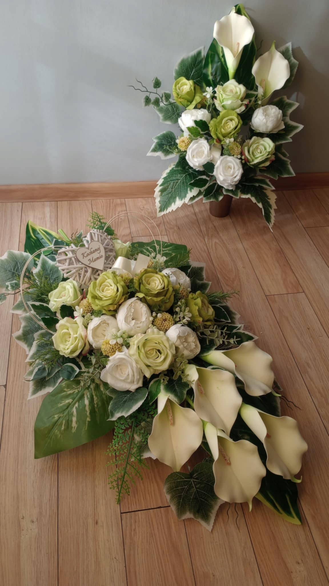 (цена для набора, состоящего из двух частей, то есть композиция, чтобы поставить на могилу и букет для вазы вместе)