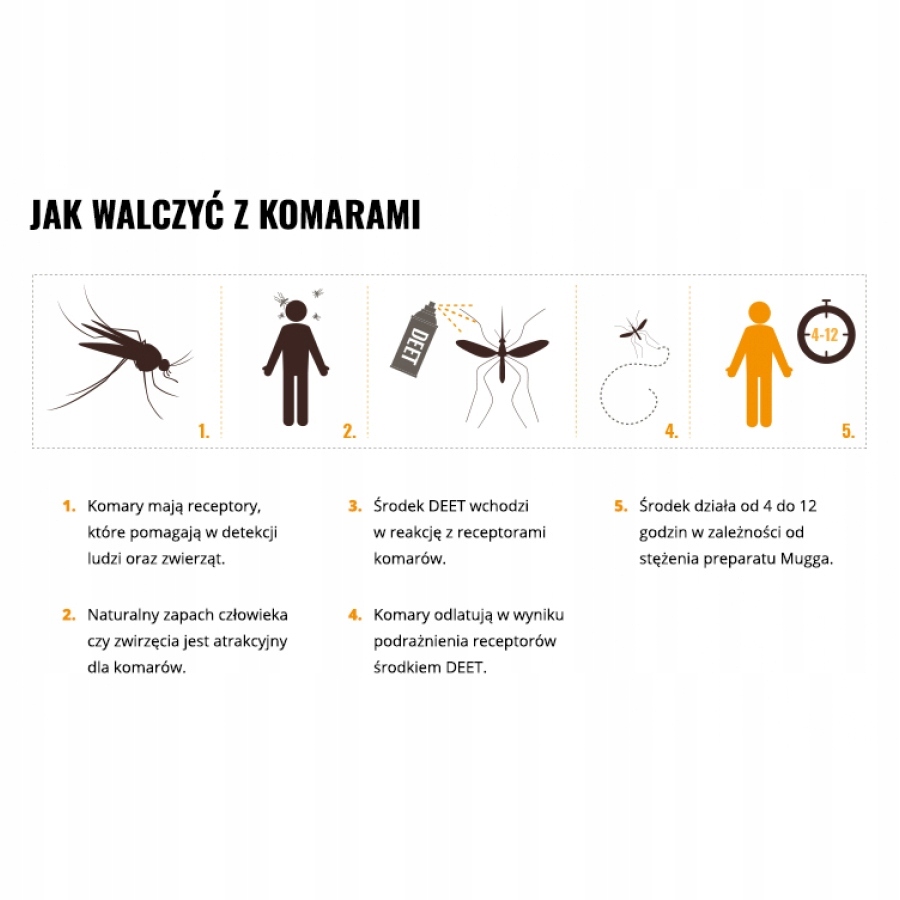 Мы можем защитить себя от этих агрессивных вредителей разными способами, например: используя ловушки, растения-репелленты, лампы и ленты. Однако наиболее эффективными, несомненно, являются профилактические препараты Мугга, содержащие активное вещество ДЭТА, рекомендованное Всемирной организацией здравоохранения (ВОЗ). Поэтому, если мы планируем экзотическое путешествие или хотим безопасно провести время на природе летом, стоит обеспечить должную профилактику и приобрести эффективный репеллент Mugga.