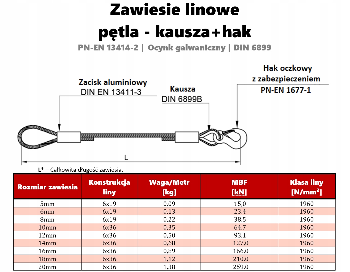 На других наших аукционах вы можете заказать и другие стандартные виды канатных стропов. С левой стороны вы можете ознакомиться с видами и выбрать тот, который максимально соответствует вашим требованиям. Если какой-то тип отсутствует, воспользуйтесь формой «задать вопрос» на Allegro. Мы постараемся помочь вам выбрать подходящий слинг.