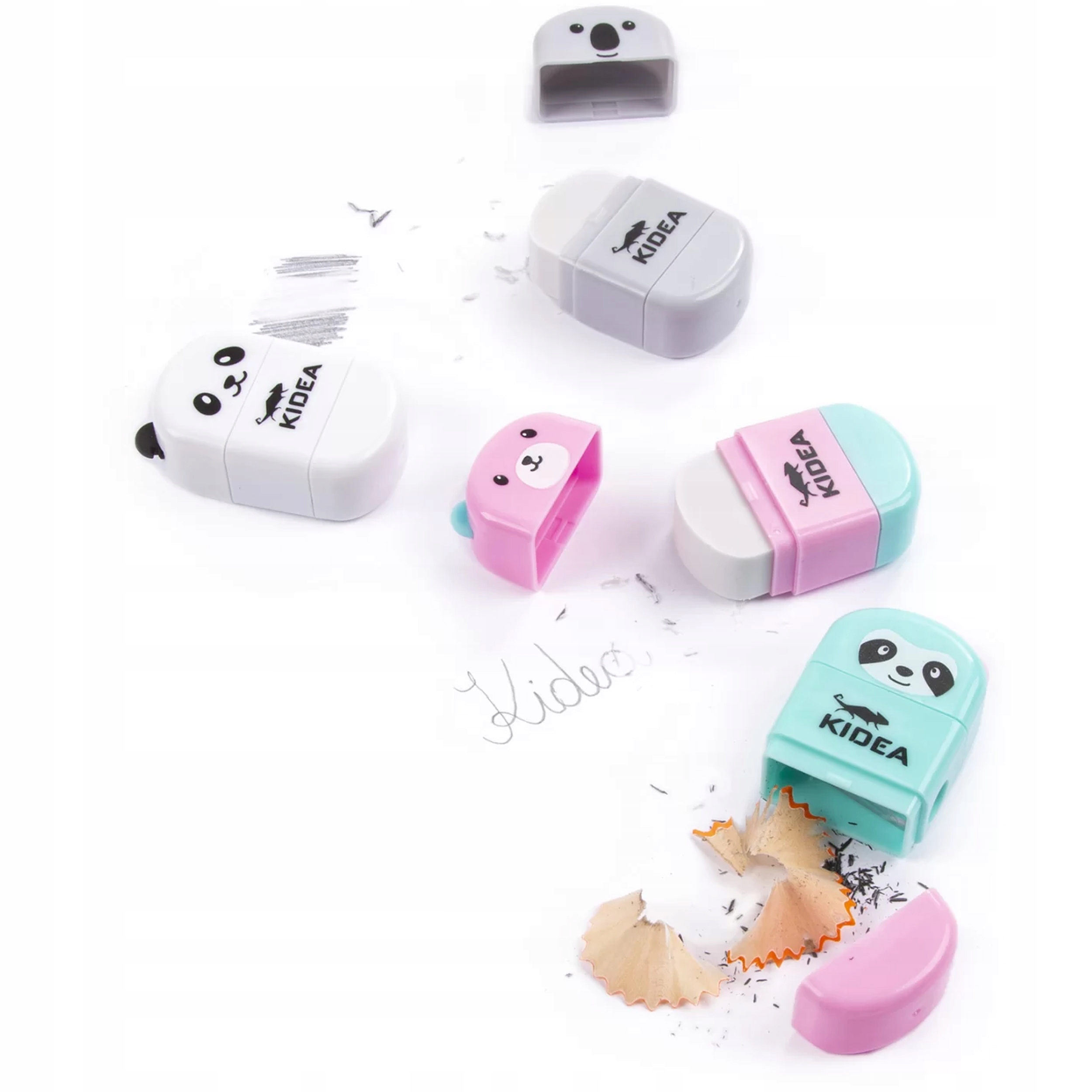 Изделие 2 в 1: состоит из мягкого ластика и точилки с безопасным лезвием и контейнера для лоскутков.