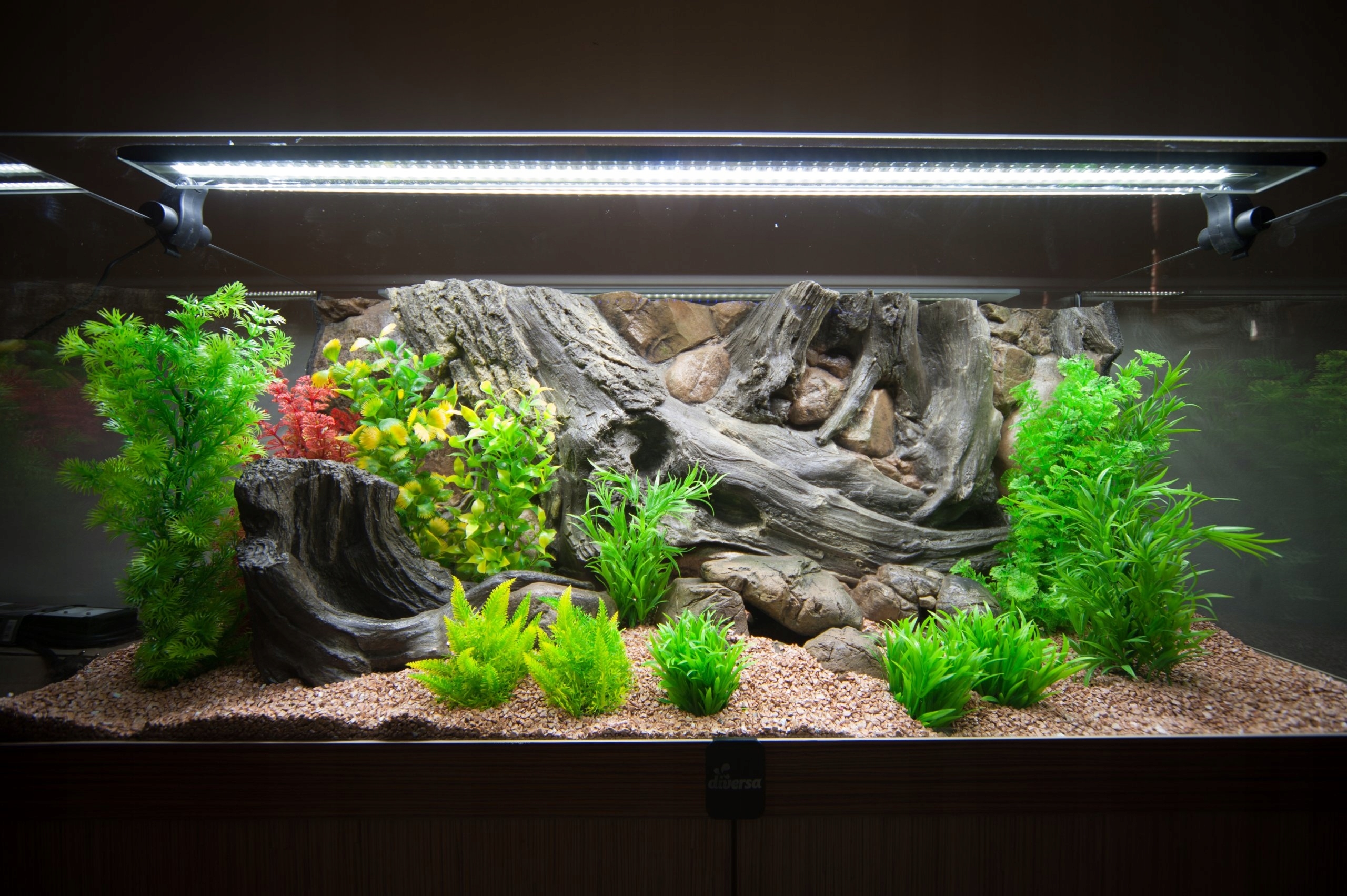Естественный вид фона позволяет получить декоративный вид аквариума, эффект потрясающий.