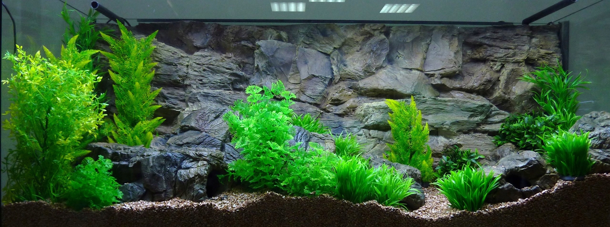 Конструктивный фон монтируется внутри аквариума. Фон следует переместить как можно дальше к верхнему кронштейну на заднем стекле и при желании можно прикрепить к заднему стеклу с помощью силикона.