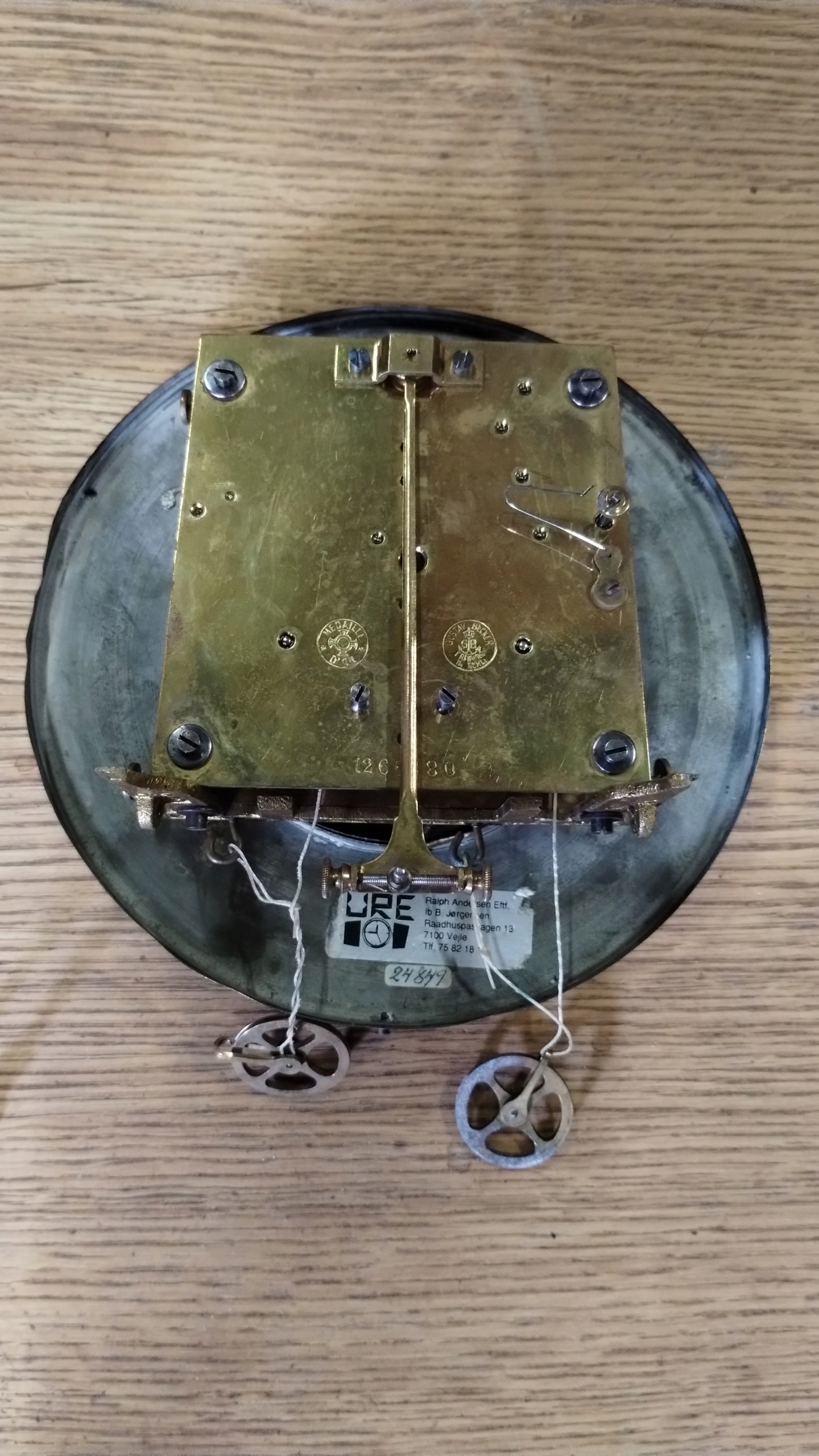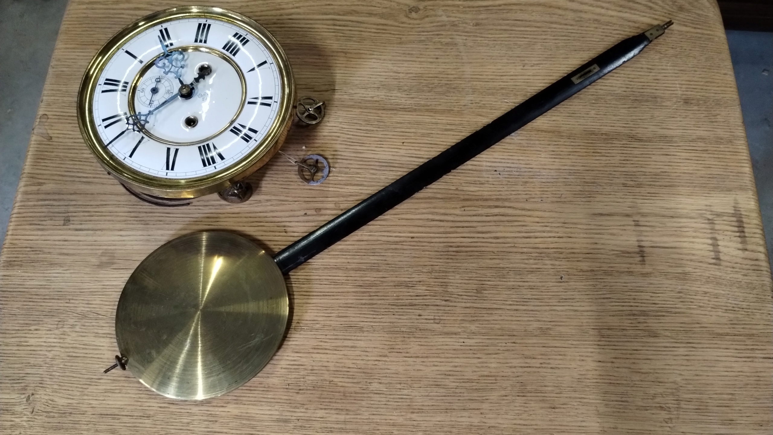 Механизм полный, в комплекте идут салазки с гонгом, механизм, маятник, весы, проставочные винты, эмалированная пластина для регулировки, не знаю работает ли, ключа у меня нет , лески целы, поврежден крючок одной из весов, оторван ударный молоток, сломана пружина с ремня маятника, продается как нерабочая и требует ремонта. Диаметр 18,5, длина с маятником 68, высота 9,5 см.