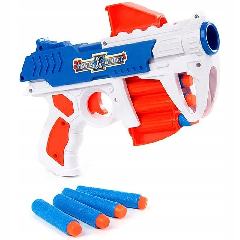 Пистолет имеет удобную рукоятку и 11 безопасных пуль.