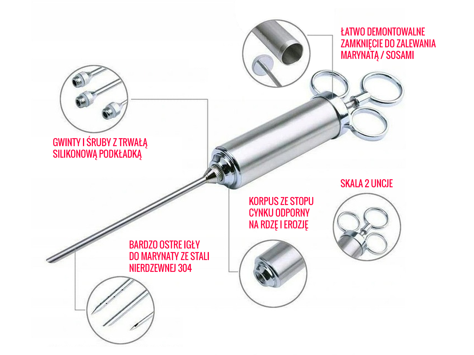 Strzykawka do PEKLOWANIA Natrysku Mięsa MARYNATĄ NASTRZYKIWARKA 3 IGŁY STAL