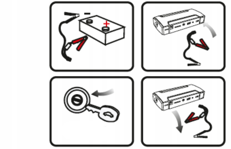 🟡 Легко в использовании , просто подключите положительные и отрицательные кабели к положительным и отрицательным зажимам аккумулятора, а затем подключите другой конец запуска кабелей к входу устройства, поверните ключ зажигания автомобиля, запустите автомобиль и отключите зажимы аккумулятора.
