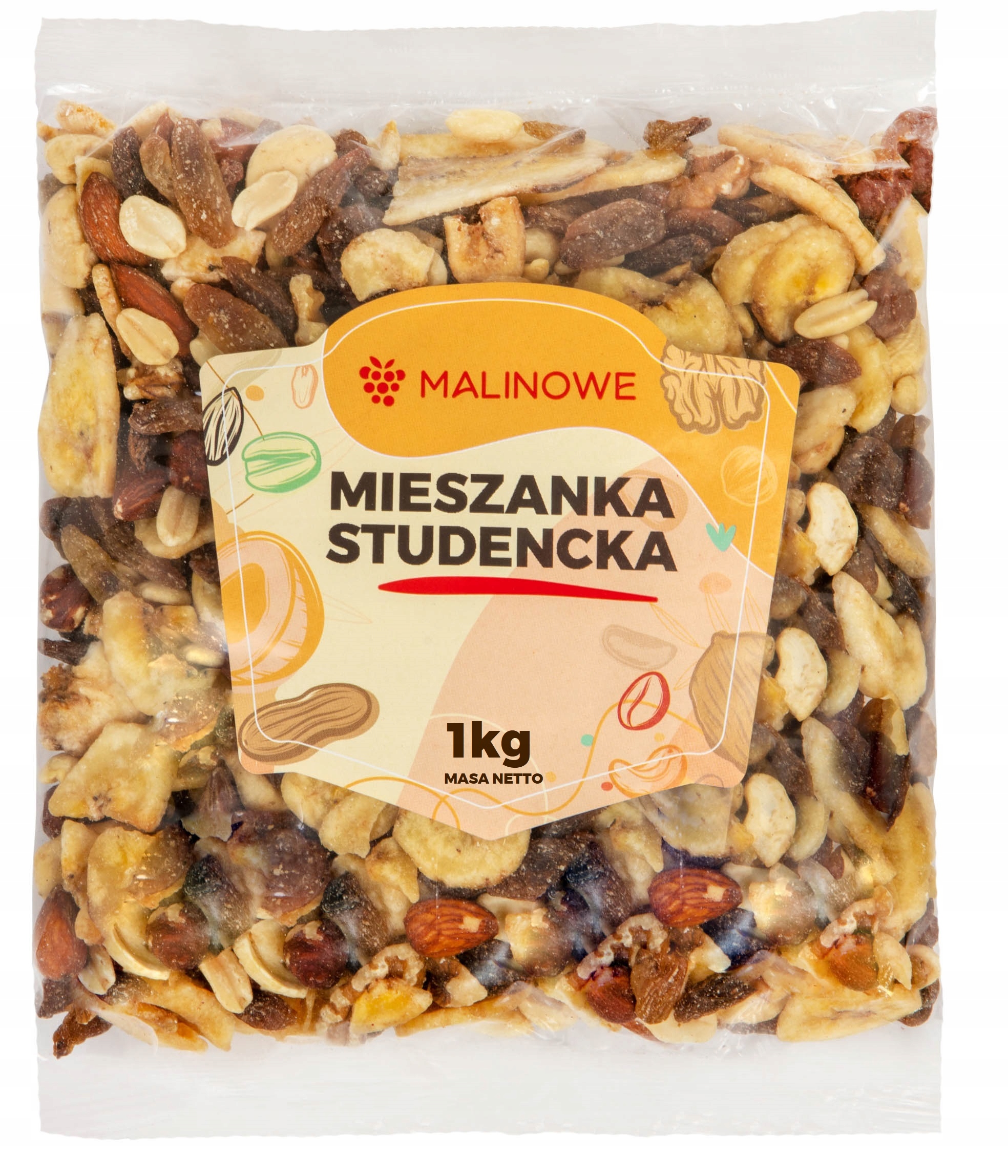 Студенческий микс - почему он так называется? Ну а легенда гласит, что из-за высокой калорийности и богатой питательной ценности их ели в основном студенты во время интенсивной учебы (например, во время экзаменационной сессии)! И сегодня они окажутся отличной опорой для порой утомительного интеллектуального труда. Однако благодаря смеси из сухофруктов из Малиновы они также являются хорошей альтернативой традиционным сладостям.