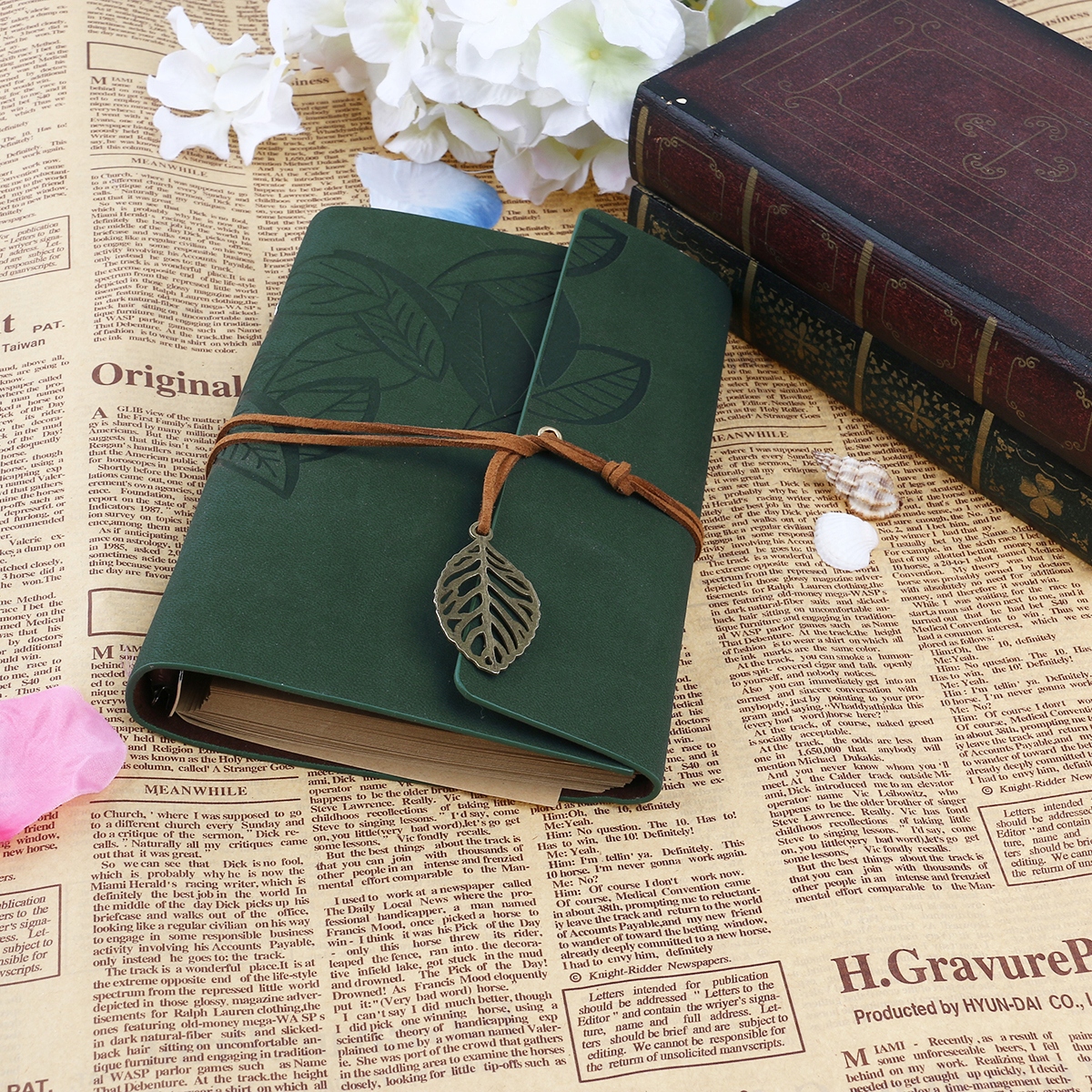 ✅1 * TINKSKY в винтажном стиле с узором в виде листьев. Обложка из искусственной кожи. Свободные листы, перевязанные веревкой. Пустой блокнот. Дорожный журнал. Журнал Jotter Journal — размер L (зеленый)