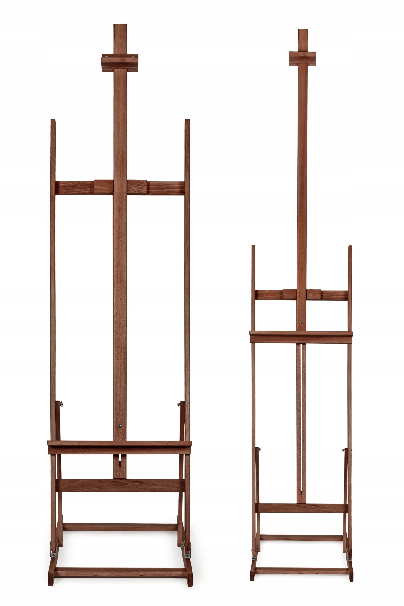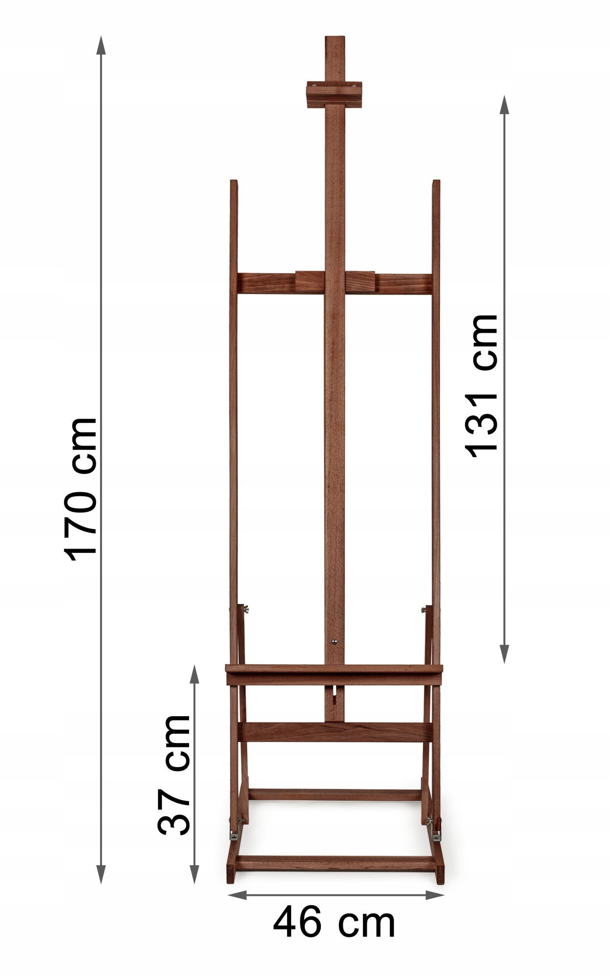 Прочный, практичный студийный мольберт из древесины бука, крашенный в темно-коричневый цвет, не лакированный.