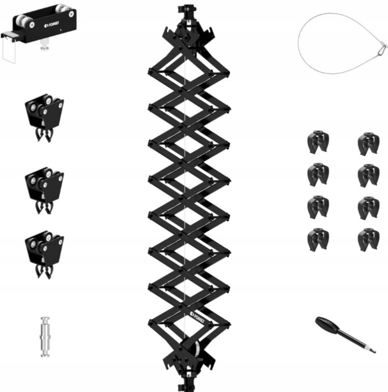 Телескопический ножничный элемент для пантографов – практичный студийный аксессуар, облегчающий регулировку освещения и обеспечивающий безопасность труда. Оснащенный ручками с предохранителем, он гарантирует устойчивость всей конструкции. Благодаря совместимости с тележкой FY7935 и штифтом для крепления светильника FY7942 обеспечивается быстрый и удобный монтаж оборудования. Прочная конструкция делает элемент надежным в повседневном использовании. Дополнительную безопасность обеспечивает возможность использования страховочного троса (FY7943) для защиты ламп от падения. Это решение, сочетающее в себе функциональность, долговечность и комфорт работы в студии.