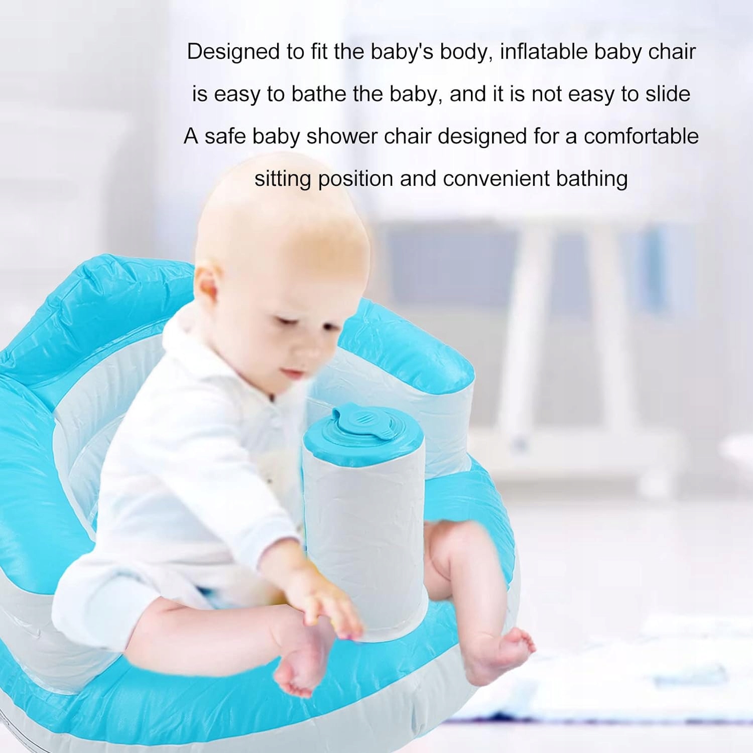 Подходит для ванной комнаты, безопасное кресло для детского душа, предназначенное для удобного положения сидя и комфортного купания. Специальный дизайн детского обучающего сиденья разработан в соответствии с формой тела ребенка, его легко купать, но нелегко перемещать. Надувной и удобный детский надувной стул имеет надувной дизайн, он удобен, как небольшой диван, имеет меньший объем после сдувания, легко хранить. Материал ПВХ. Надувное детское сиденье изготовлено из очень экологически чистого материала ПВХ, подходит для развлечения при кормлении или в качестве небольшого подарка для младенцев. Обучающее сиденье. Надувное детское кресло также можно использовать в качестве сиденья для обучения и тренировок, и ребенка нелегко перевернуть или упасть.