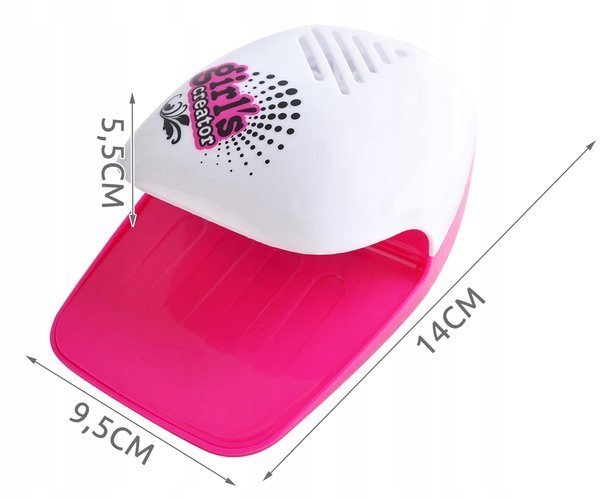 Этот блестящий, необычный набор лаков и аксессуаров с сушилкой для ногтей покорит сердце вашего ребенка. Это позволит ей подражать маме и даже красить вместе с ней ногти. Лаки для ногтей не содержат токсичных и опасных для здоровья девочек веществ, они безопасны и очень легко смываются. Просто слегка подденьте слой лака и потяните его вверх, и он сам оторвется от ногтя. Они сертифицированы CE и EN 71.
