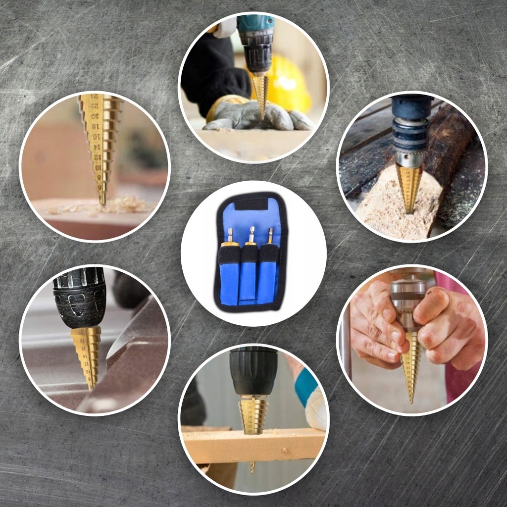 Наш набор из 3 конусных сверл из HSS (быстрорежущей стали) с титановым покрытием обеспечивает высокую качество и долговечность. Вот почему стоит выбрать наш набор: