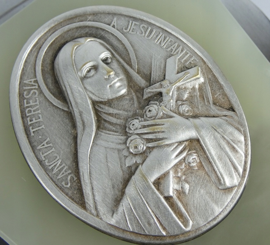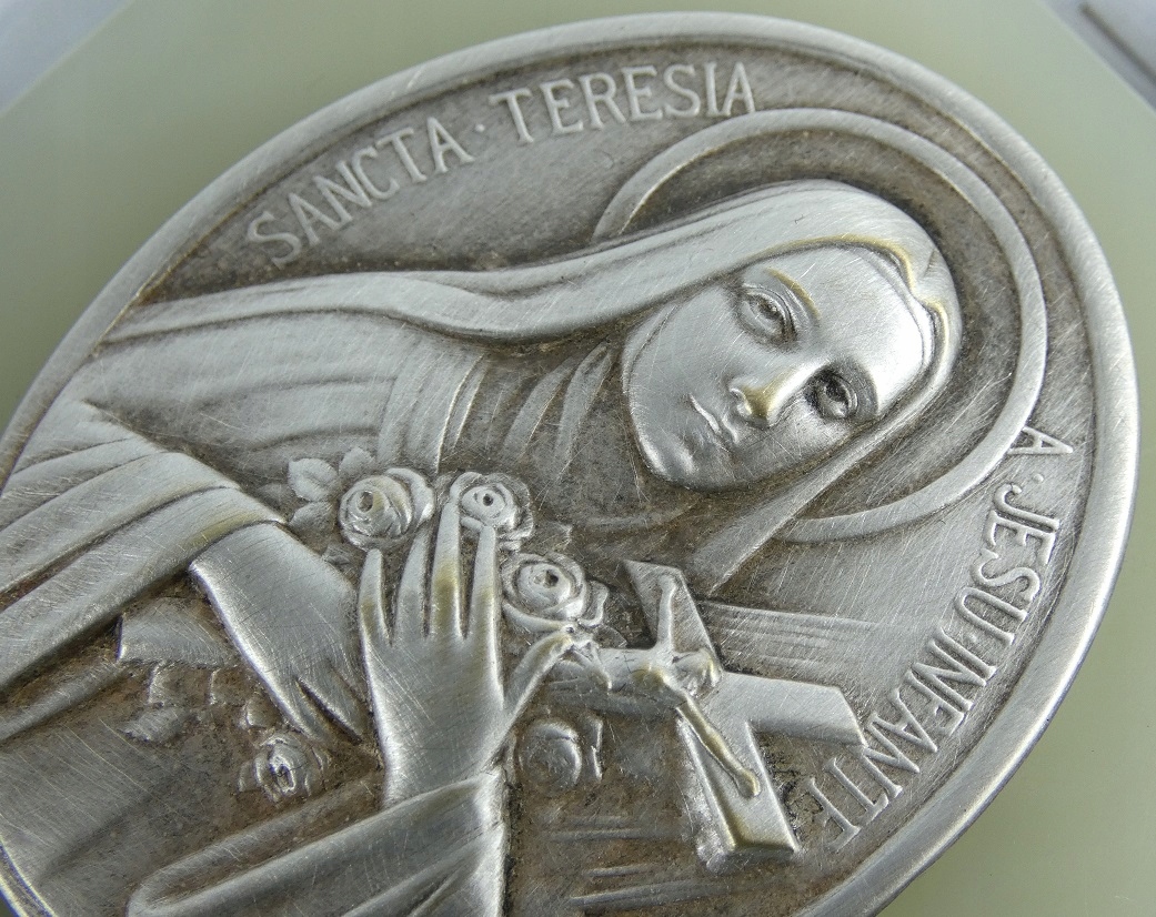 Изображение святого. Тереза, посеребренная латунь, подпись.
