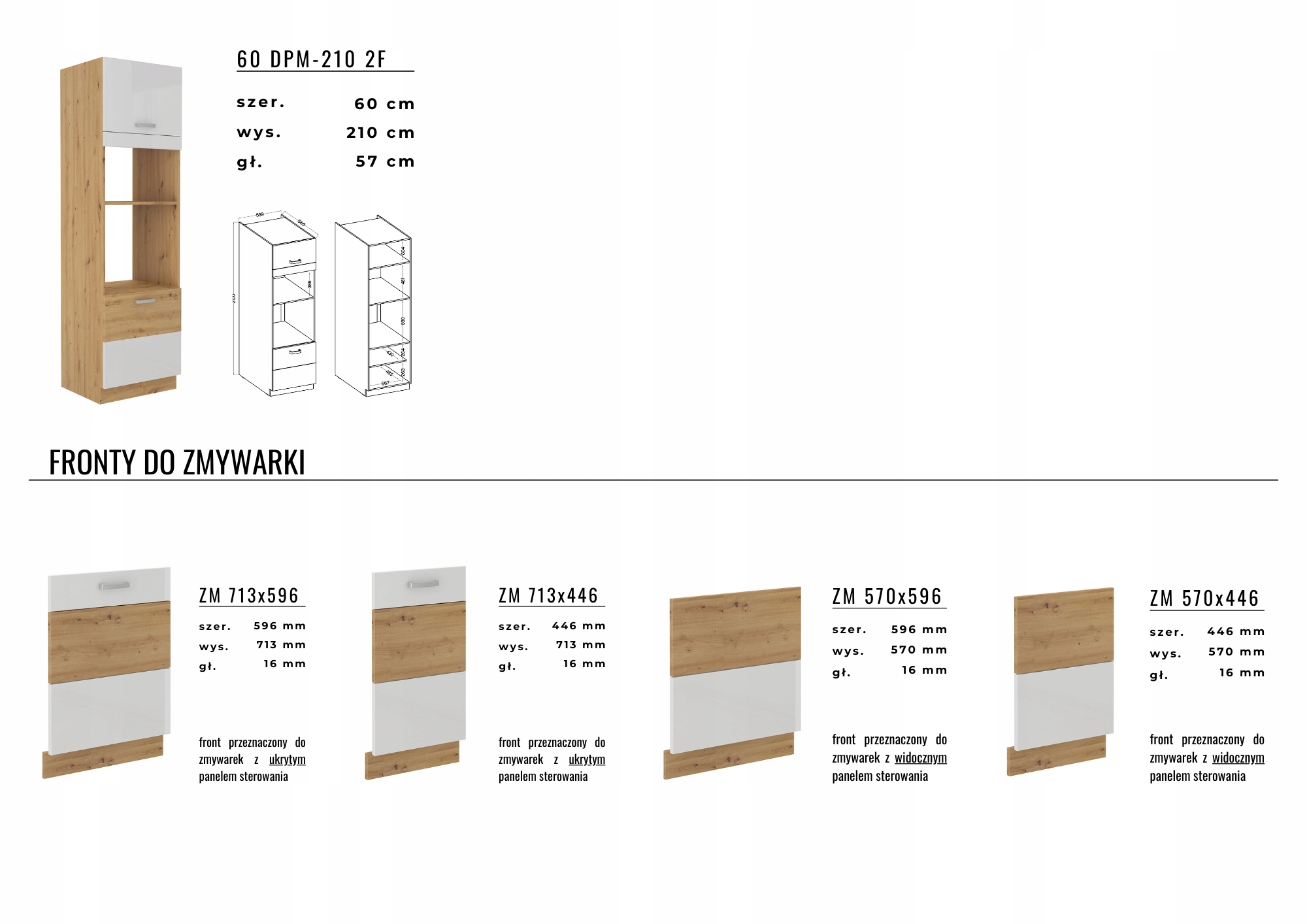 Фасадная часть: ламинированная плита 16 мм дуб ремесленный / глянцевая МДФ 16 мм / обод АБС