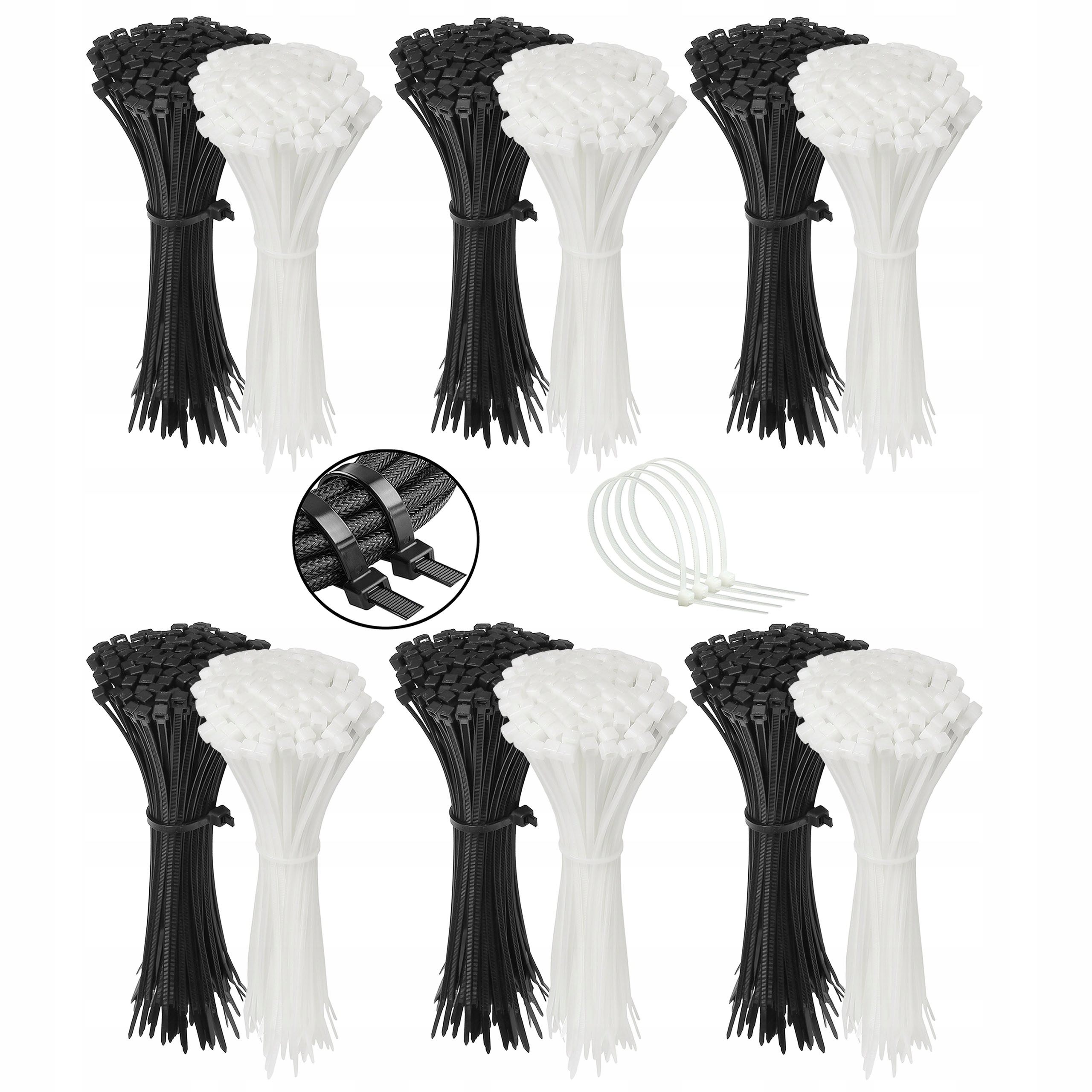 Стяжки-зажимы, черные + белые кабельные стяжки 200х2,5х1200
