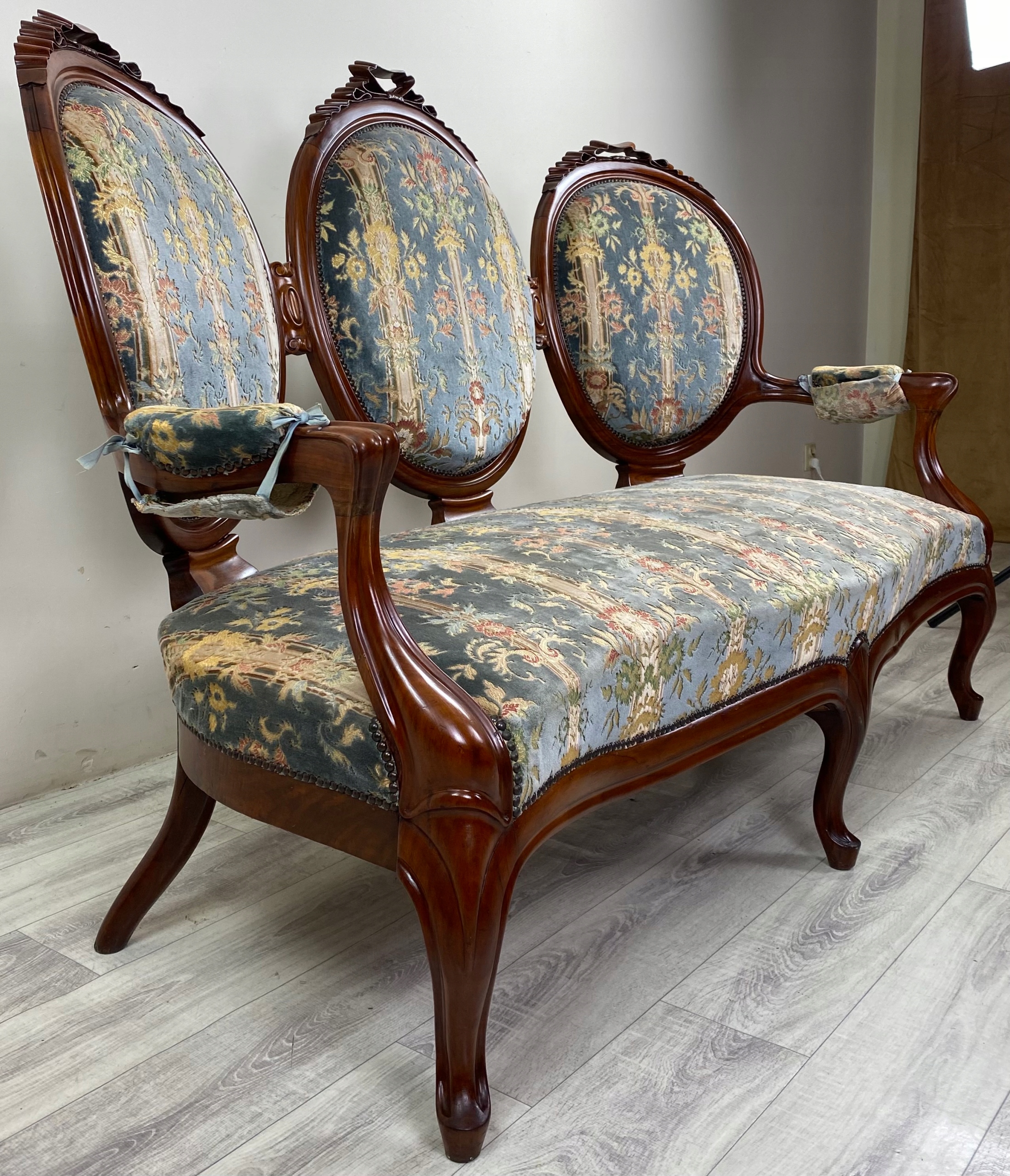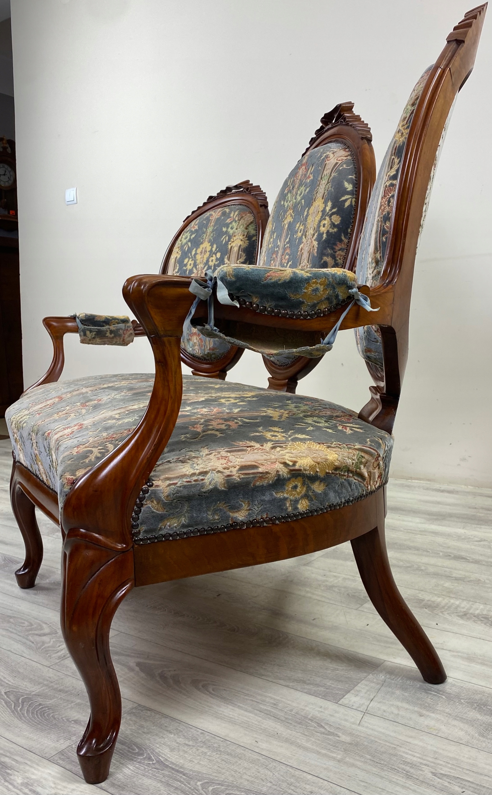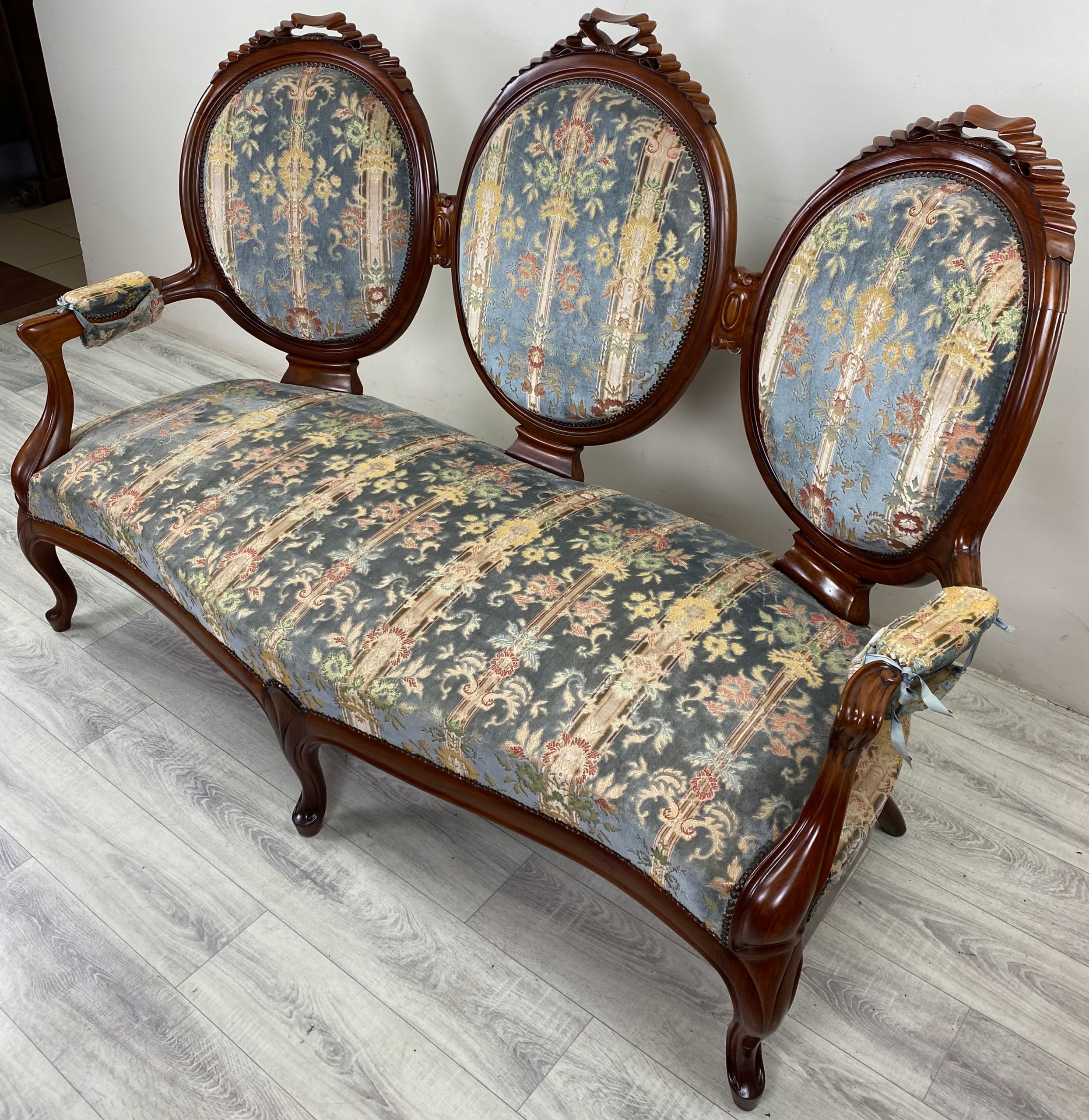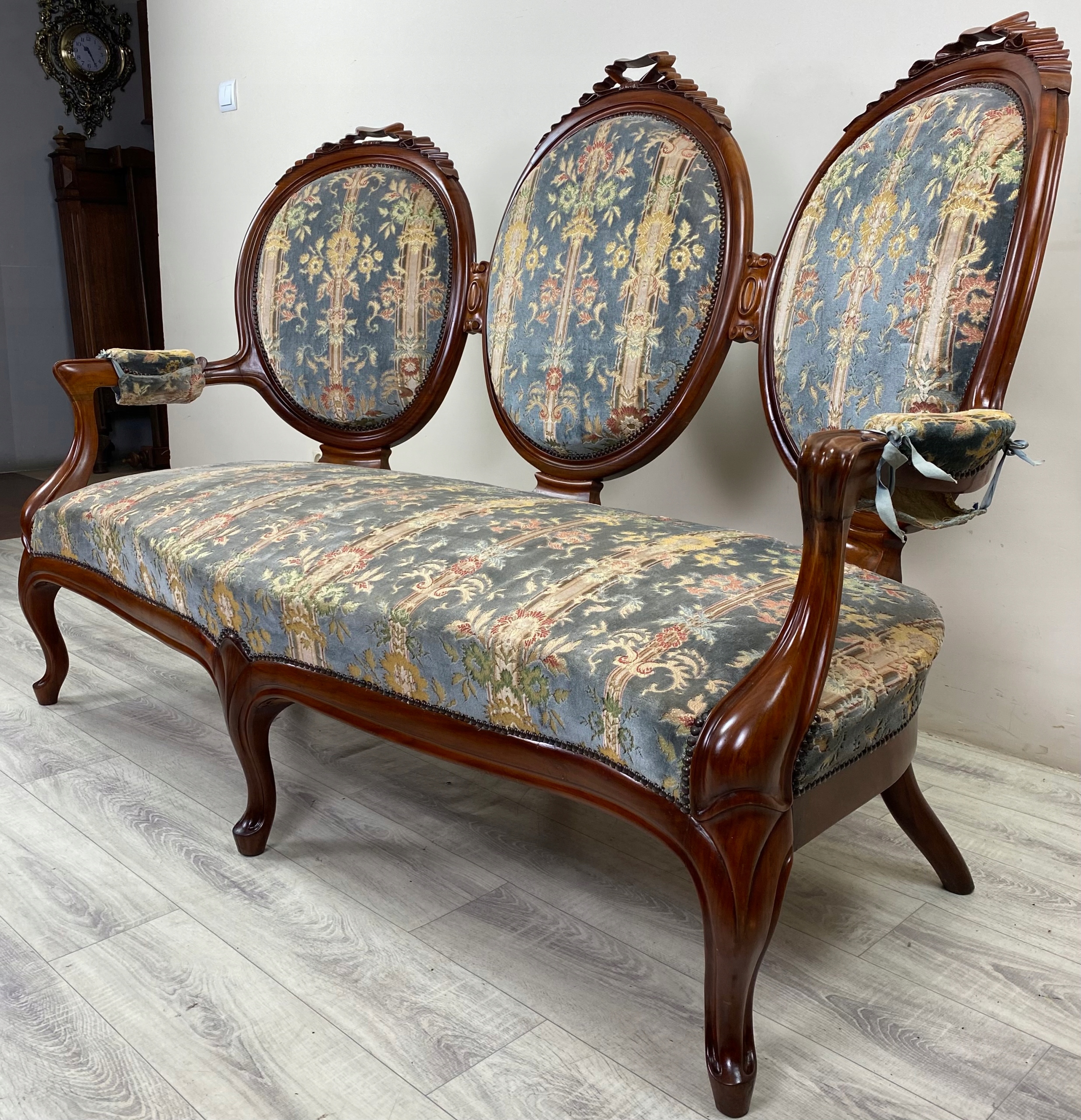 STYLOWA ŁAWKA PAŁACOWA BAROK SOFA KANAPA LITY MAHOŃ FRANCJA N70
