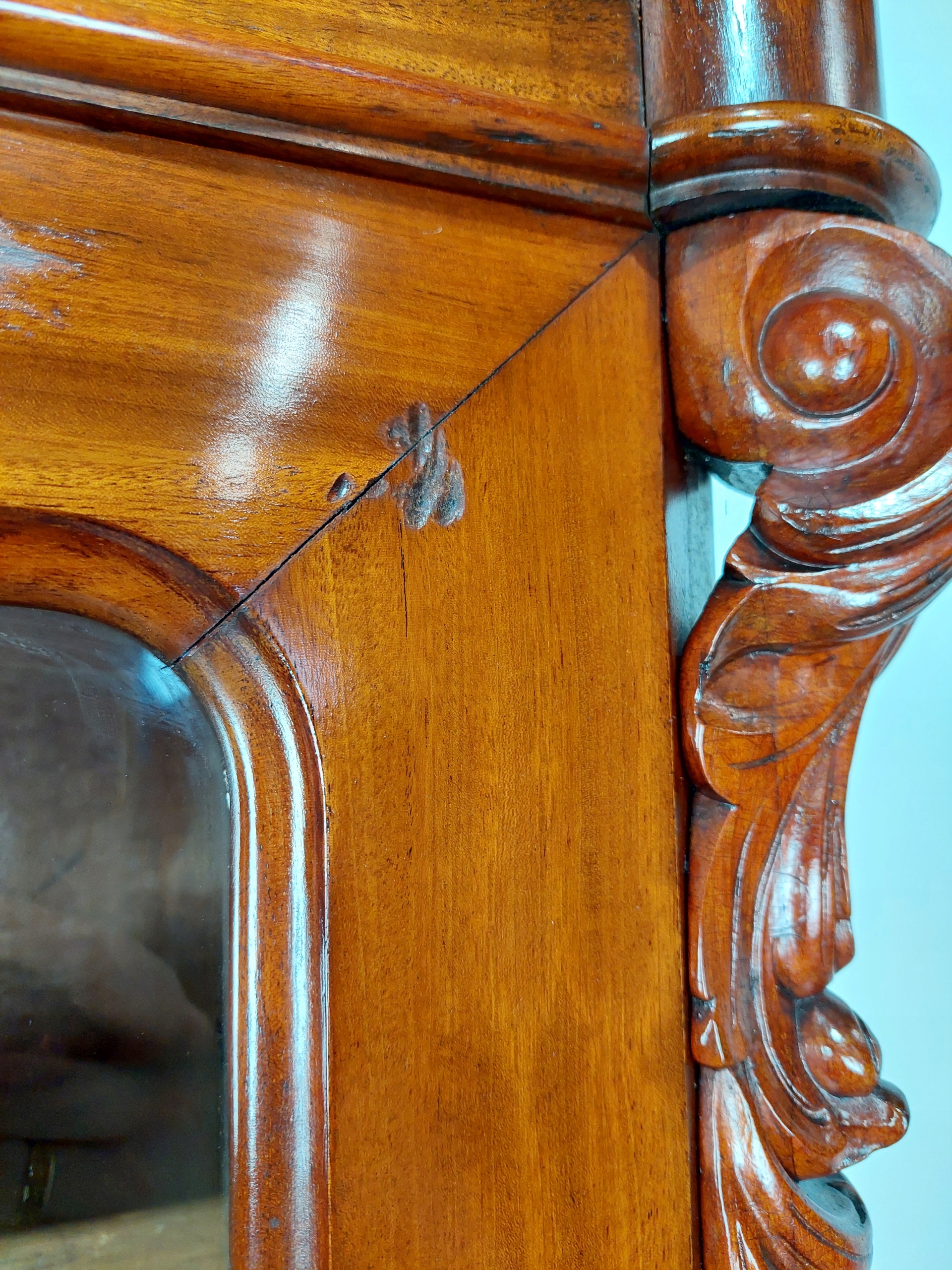 Стильная библиотека/витрина из красного дерева – стеклянная полка, импортированная из Франции. Замок работает, ключ в комплекте. Внутри находится система с регулируемыми полками. Мебель транспортируется в разложенном и закрепленном виде. На мебели имеются следы эксплуатации (т.е. потертости, отсутствующий фрагмент средней дверной планки, естественная сушка левой стороны, слегка покоробленная правая дверь, незначительная утрата верхнего левого декора). Подробные фото ниже.
