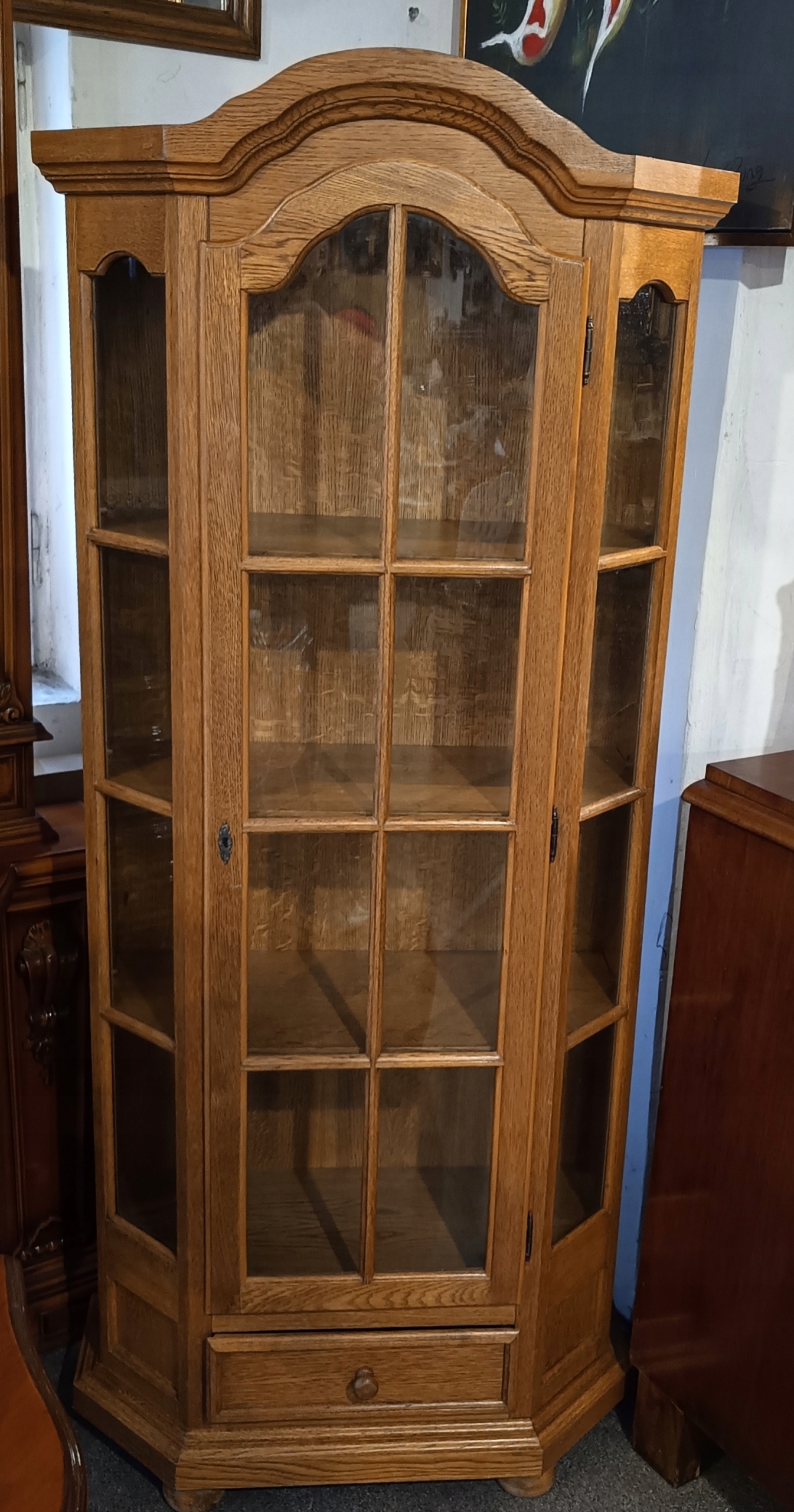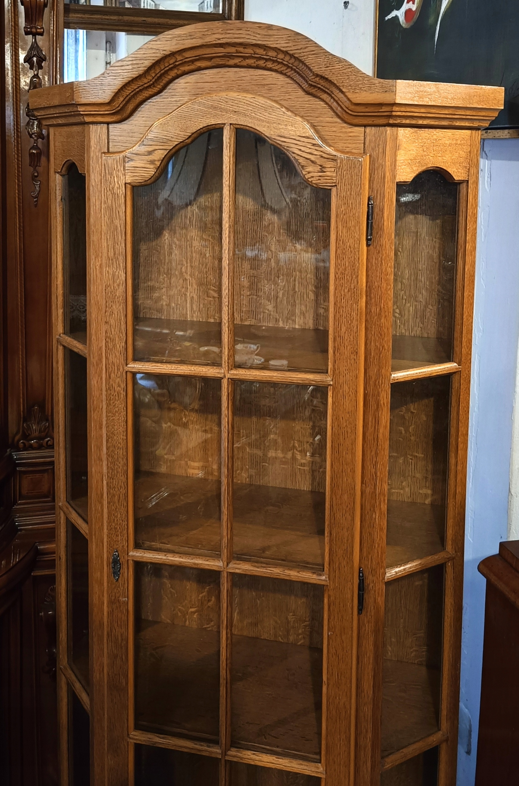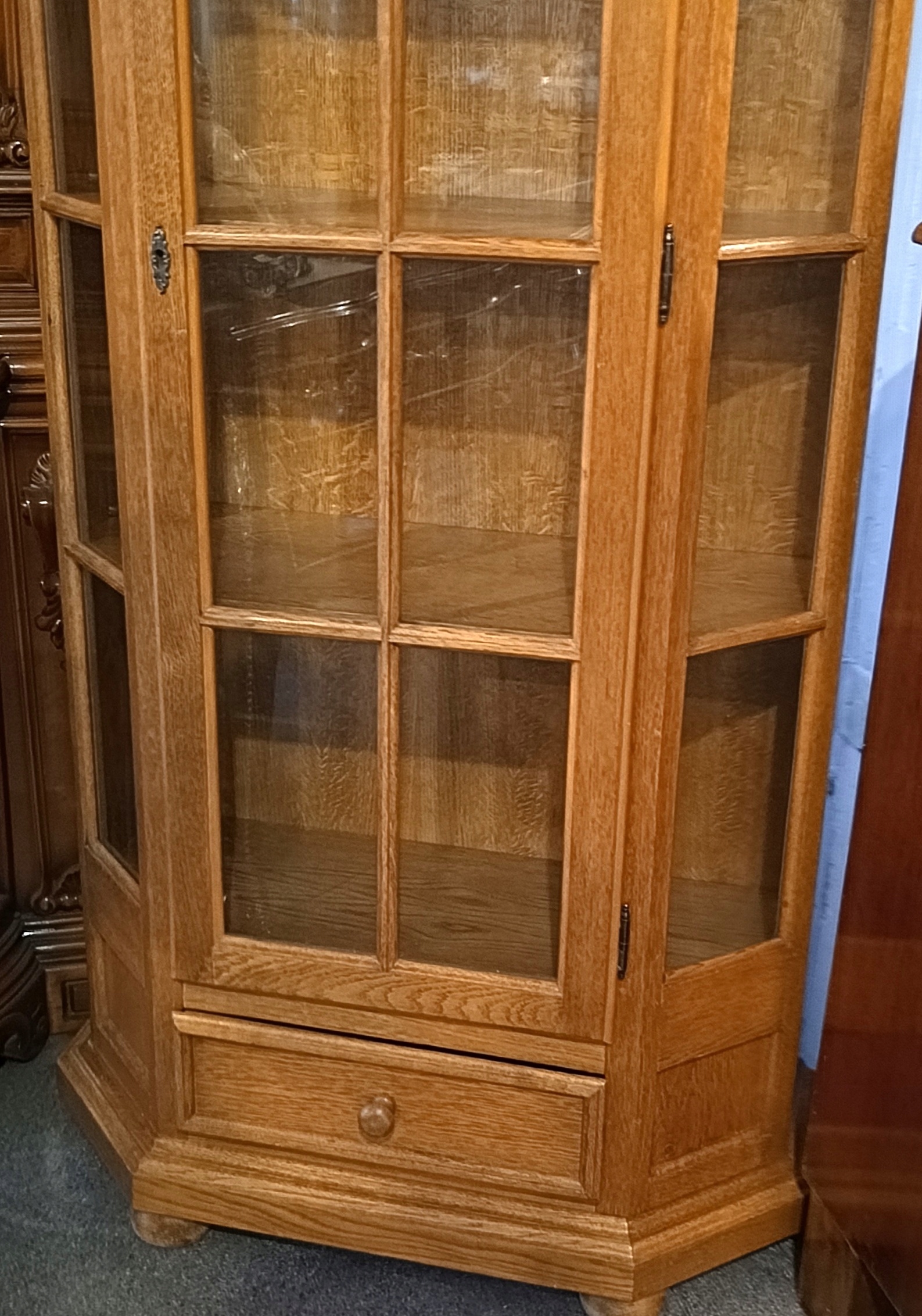 Современная витрина - (б/у, в хорошем состоянии) с сохранением старого дизайна и стиля. Имеет остекление с трех сторон. Внизу имеется практичный ящик. Красивые цвета рустикального дуба, многочисленные изысканные украшения и форма – единственные преимущества. Представленная витрина непременно повысит эстетическую ценность любого помещения и поможет вам продемонстрировать, например, чудесный фарфор. Состояние мебели очень хорошее и не требует никаких финансовых затрат.