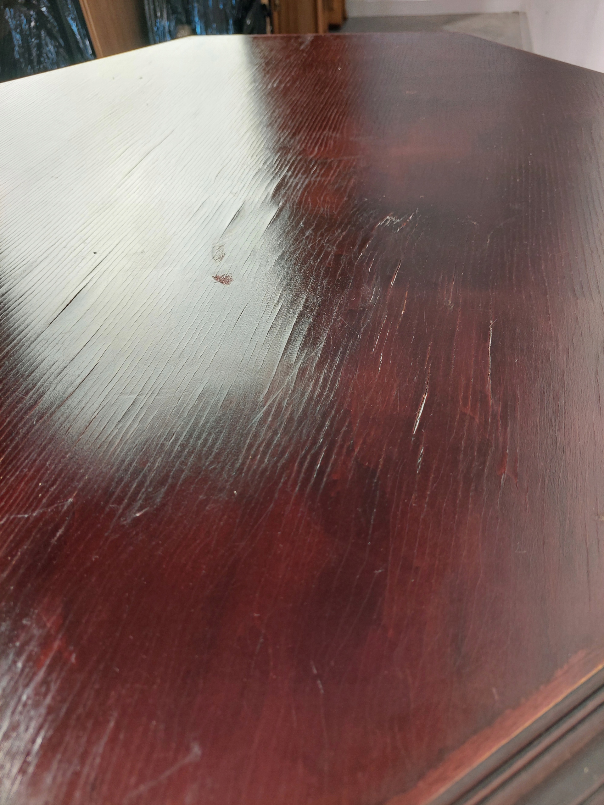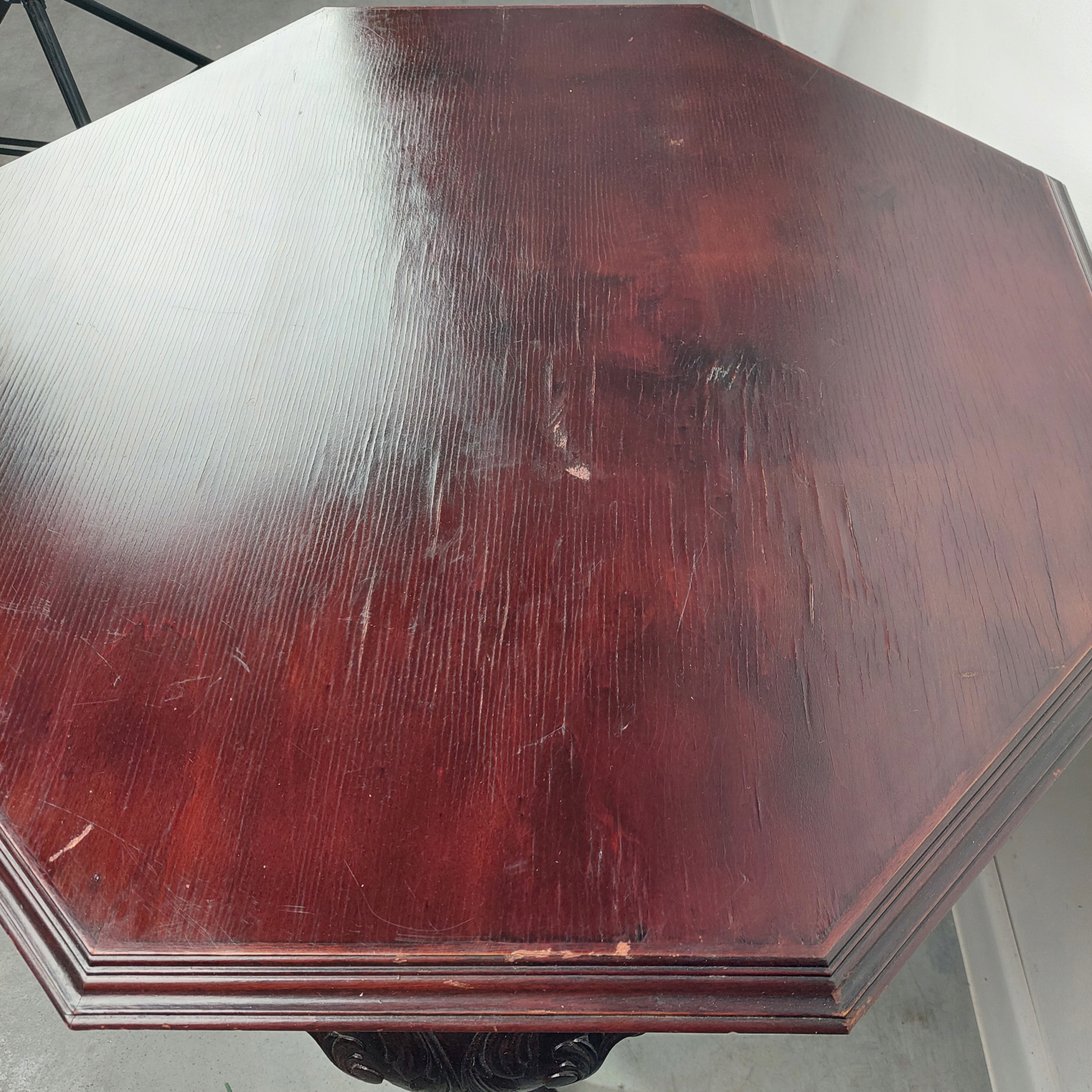 Стильный шестигранный стол/скамья в стиле Чиппендейл, импортированный из Франции. Цельный предмет мебели на гнутых ножках, который может служить подставкой для цветов. Видимые следы использования, такие как царапины, потертости и неровности шпона на столешнице. Подробности показаны на фотографиях ниже.