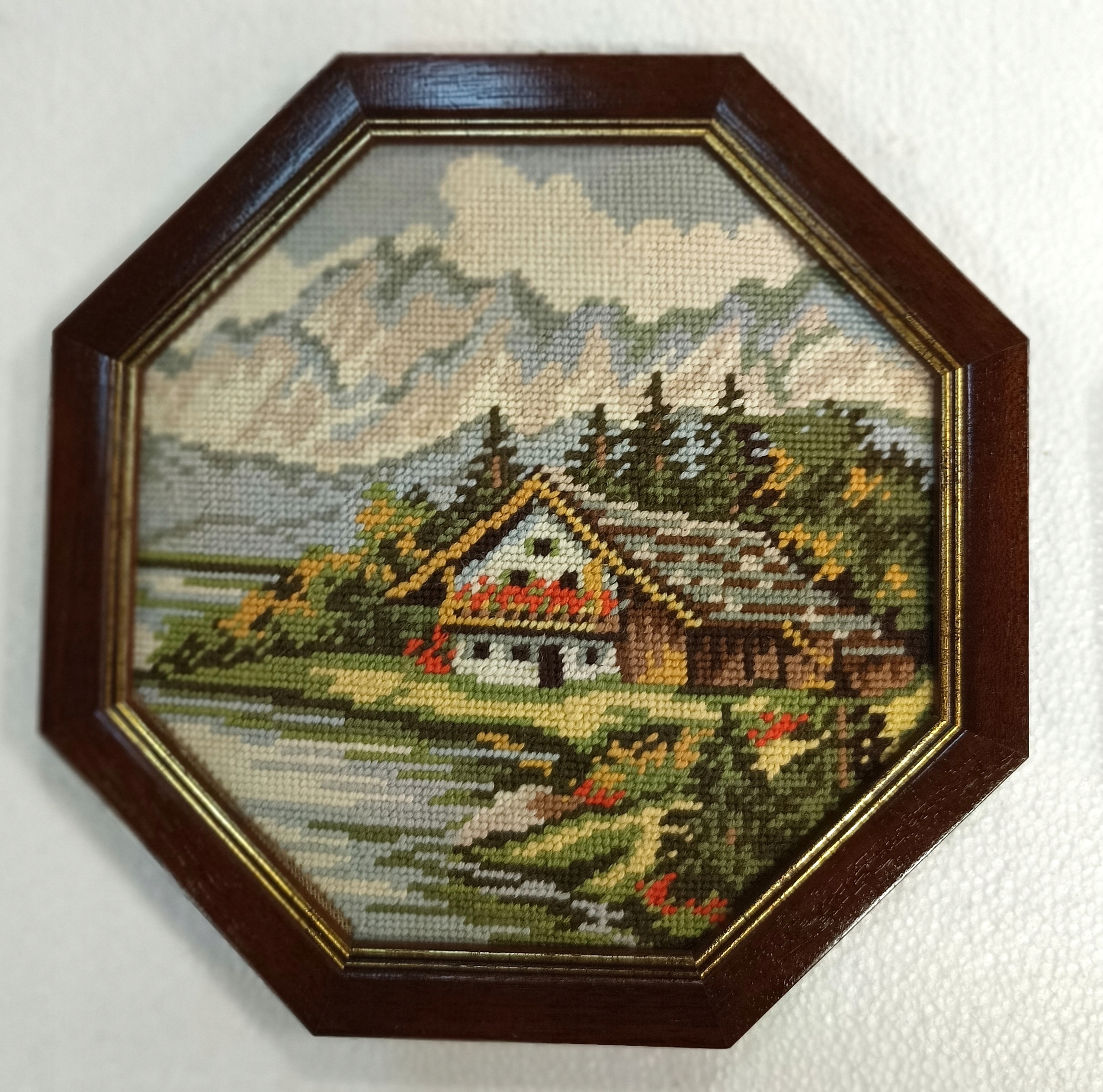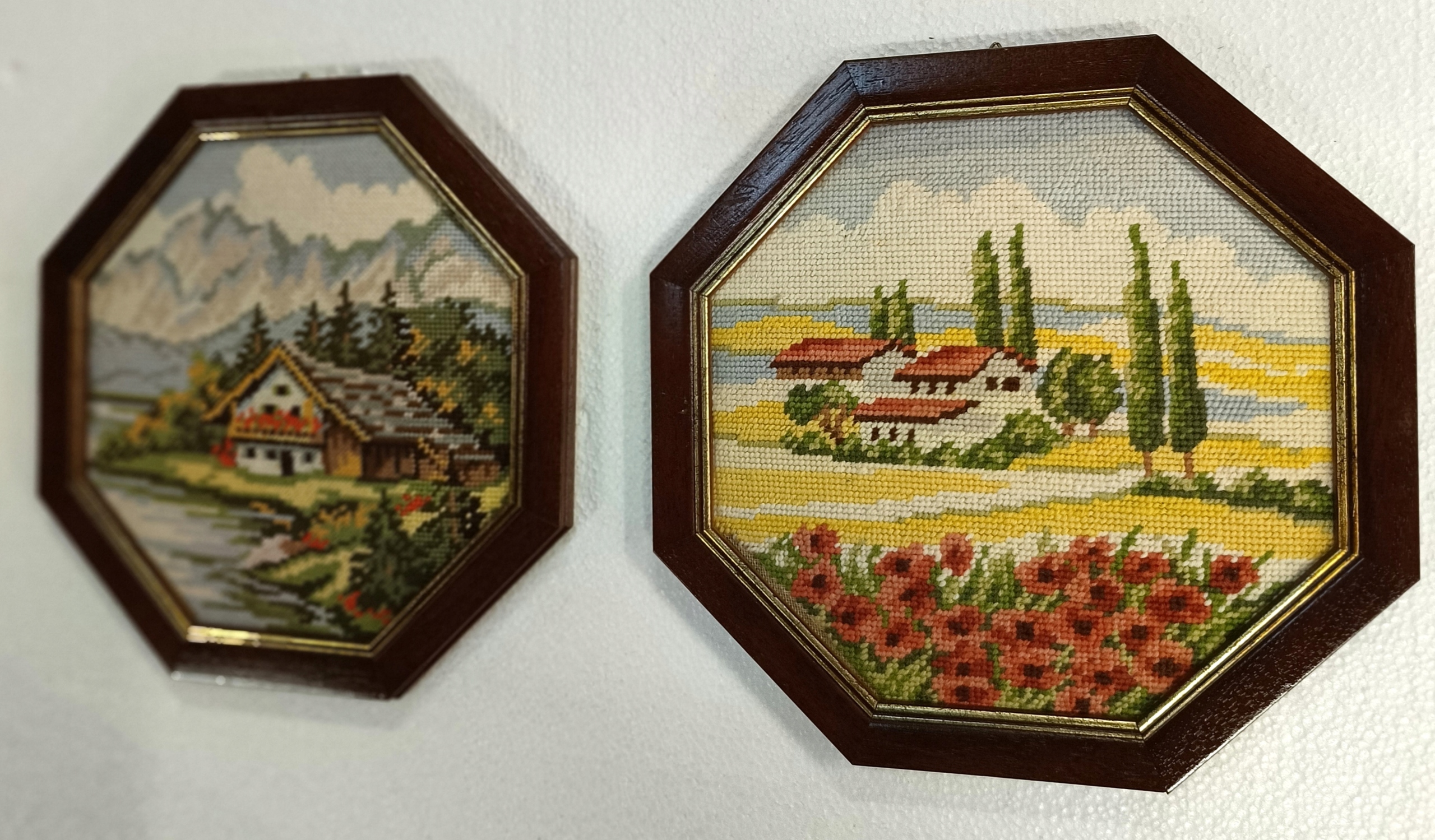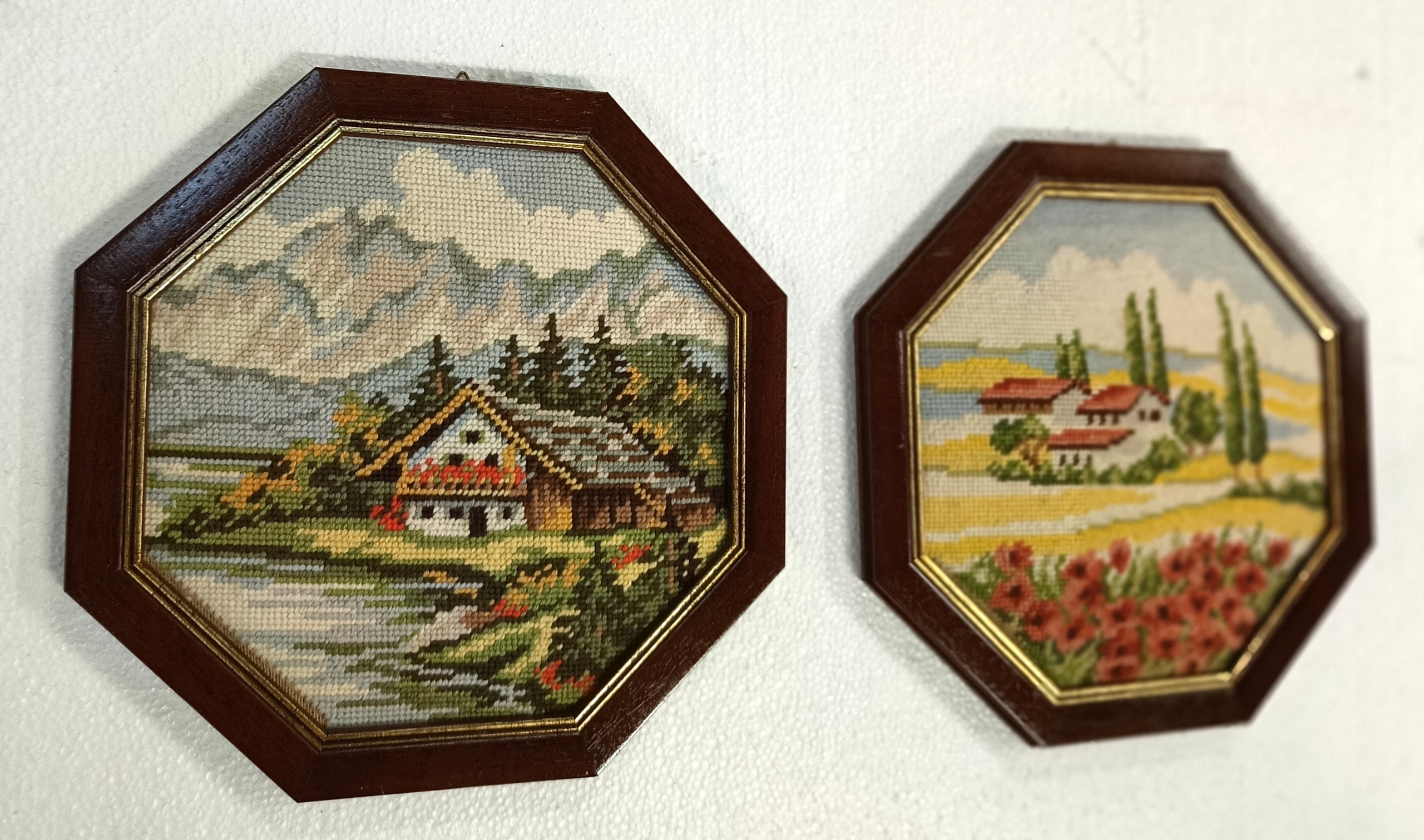 Stylowy Obraz Tkany Gobelin Krajobraz Drewniana Rama 8-bok 2 szt.