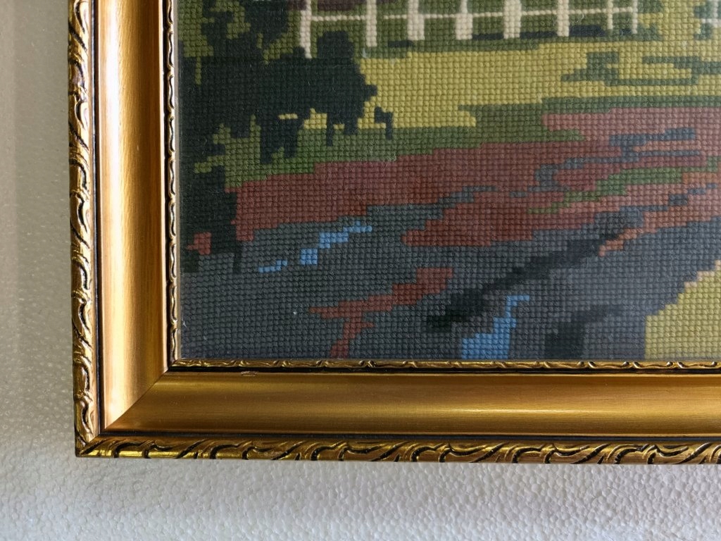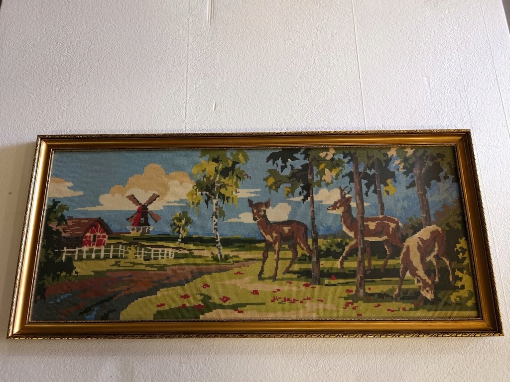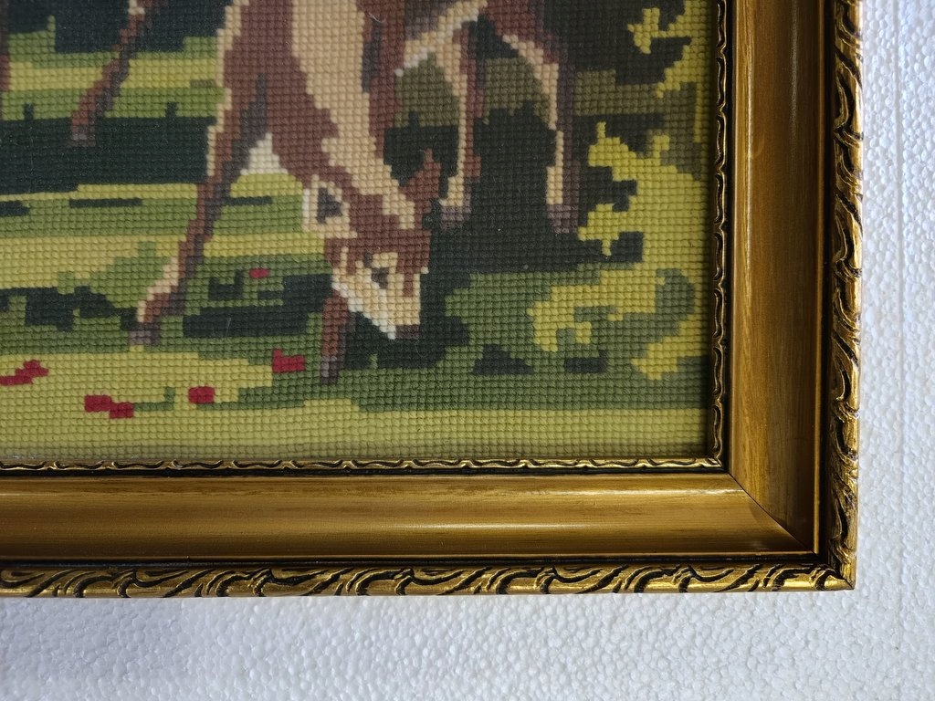 Stylowy Obraz Tkany Gobelin Sarny Rama Drewno 115 x 61 cm