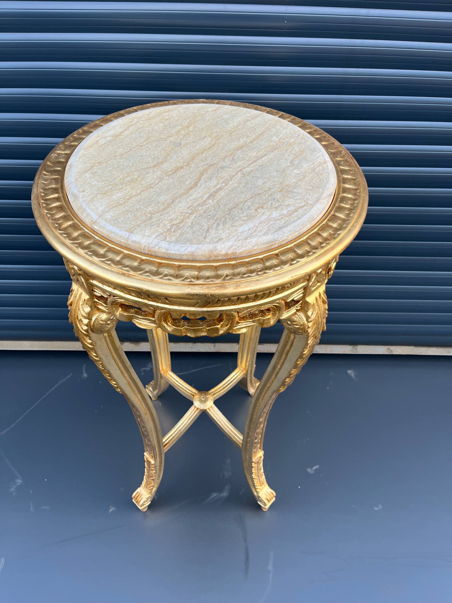 Stylowy Stolik -KWIETNIK - ZŁOTY - okrągły blat marmurowy
