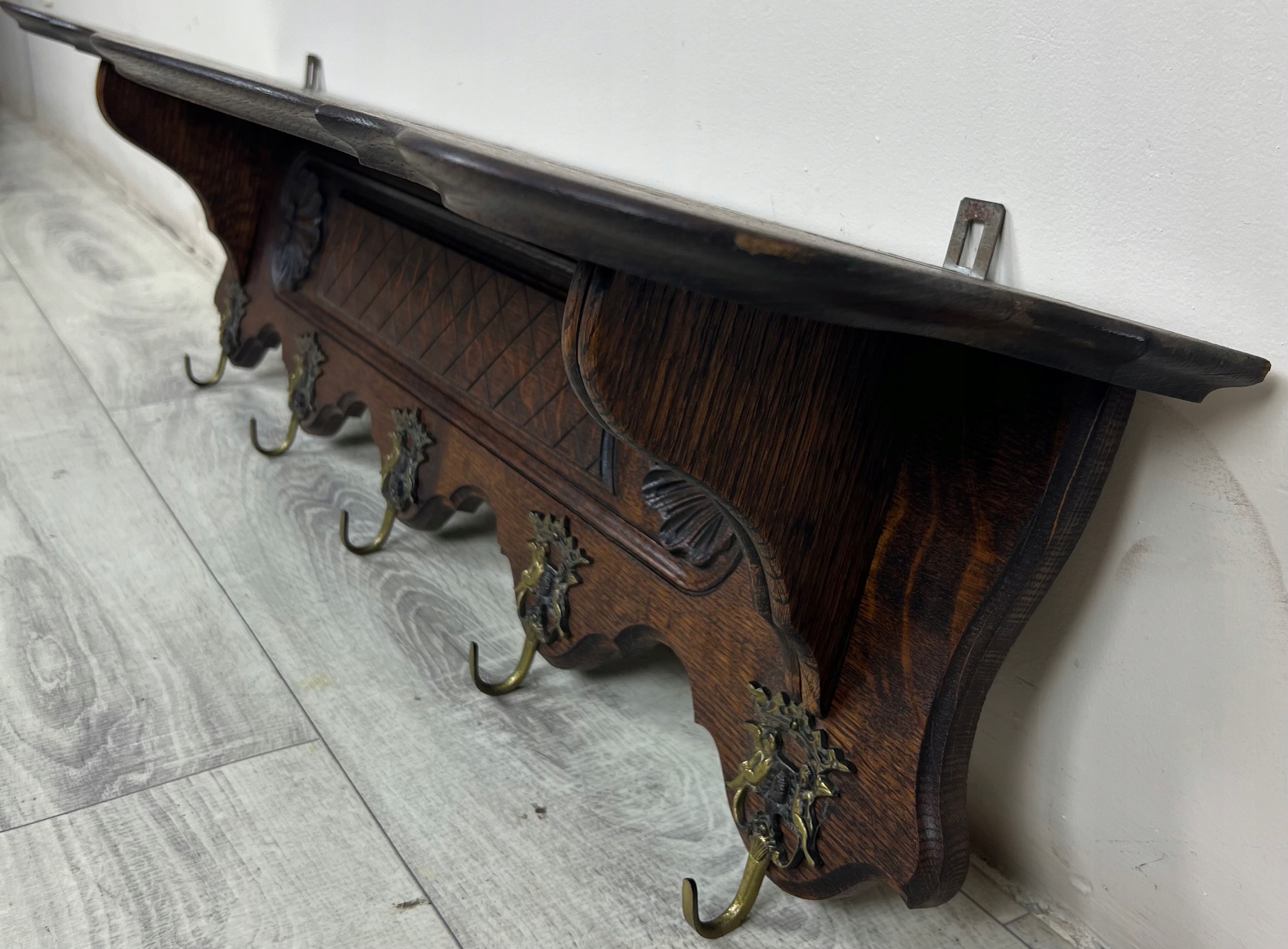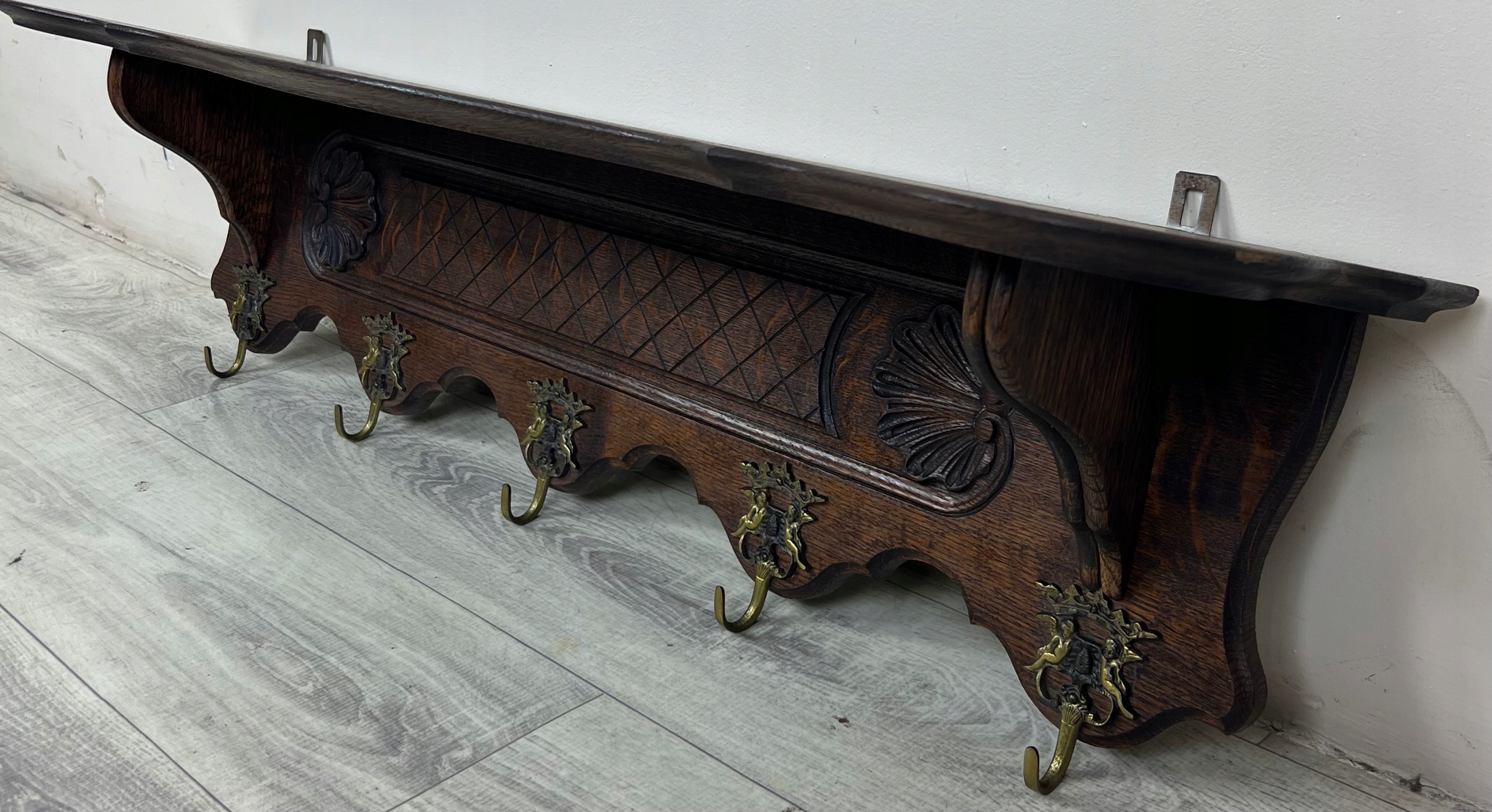 СТИЛЬНАЯ ВЕШАЛКА ИЗ ДУБА ПОДВЕСНАЯ ПОЛКА ЭКЛЕКТИЧНЫЙ МАССИВ ДУБА С 5 КРЮЧКАМИ M99