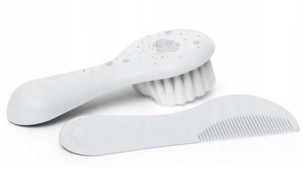 И щетка, и расческа не имеют острых и опасных краев, которые могут быть опасны для ребенка. Зубья расчески имеют закругленные концы, а волокна щетки мягкие и гибкие. Идеально подходит для нежной кожи и волос ребенка, подходит малышам с рождения.