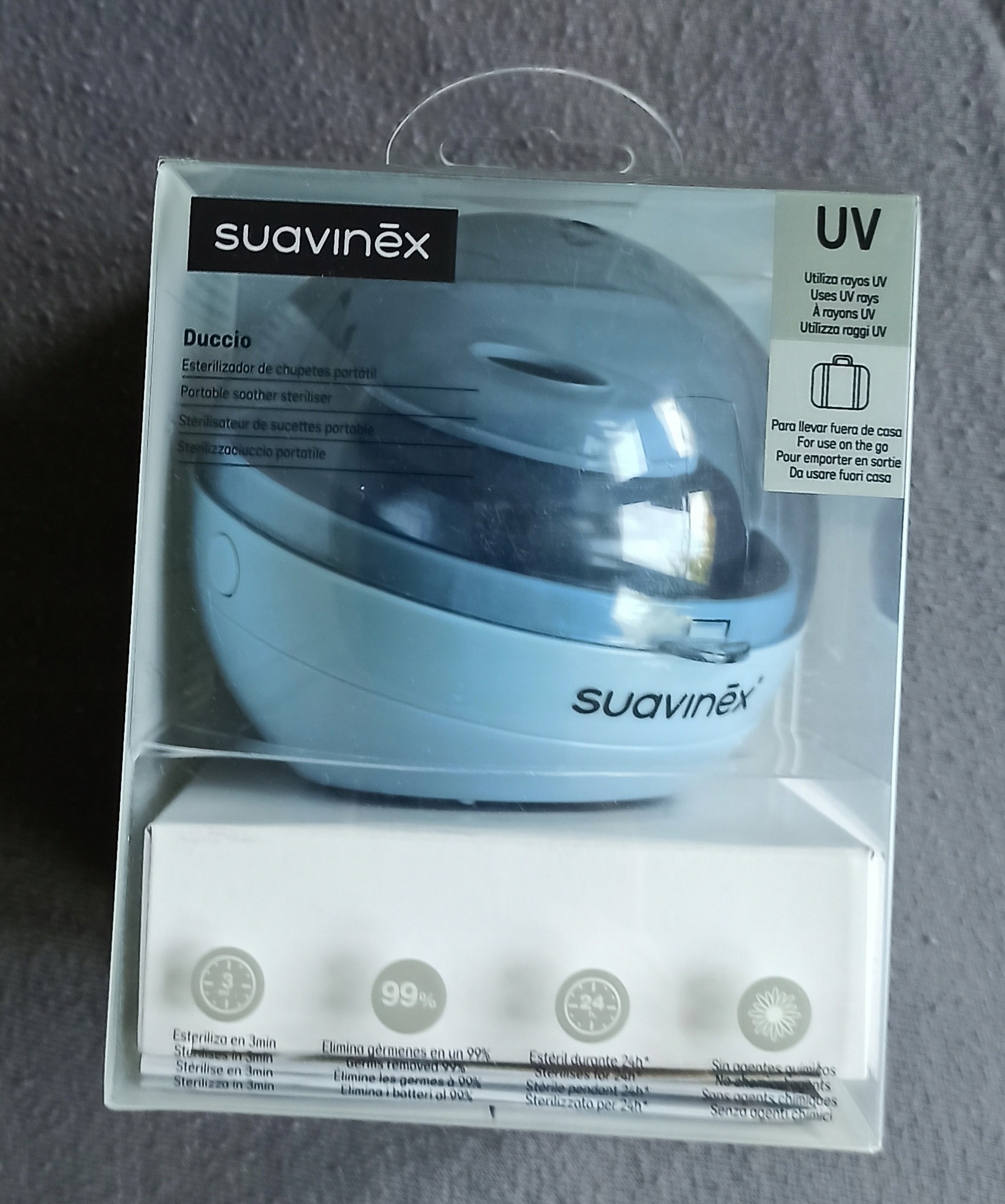 Suavinex, портативный стерилизатор для сосок с УФ-излучением, уничтожает 99% микробов за 3 минуты, работает от аккумулятора или USB, безопасный, не содержит химикатов, идеально подходит для путешествий, синий Дуччио