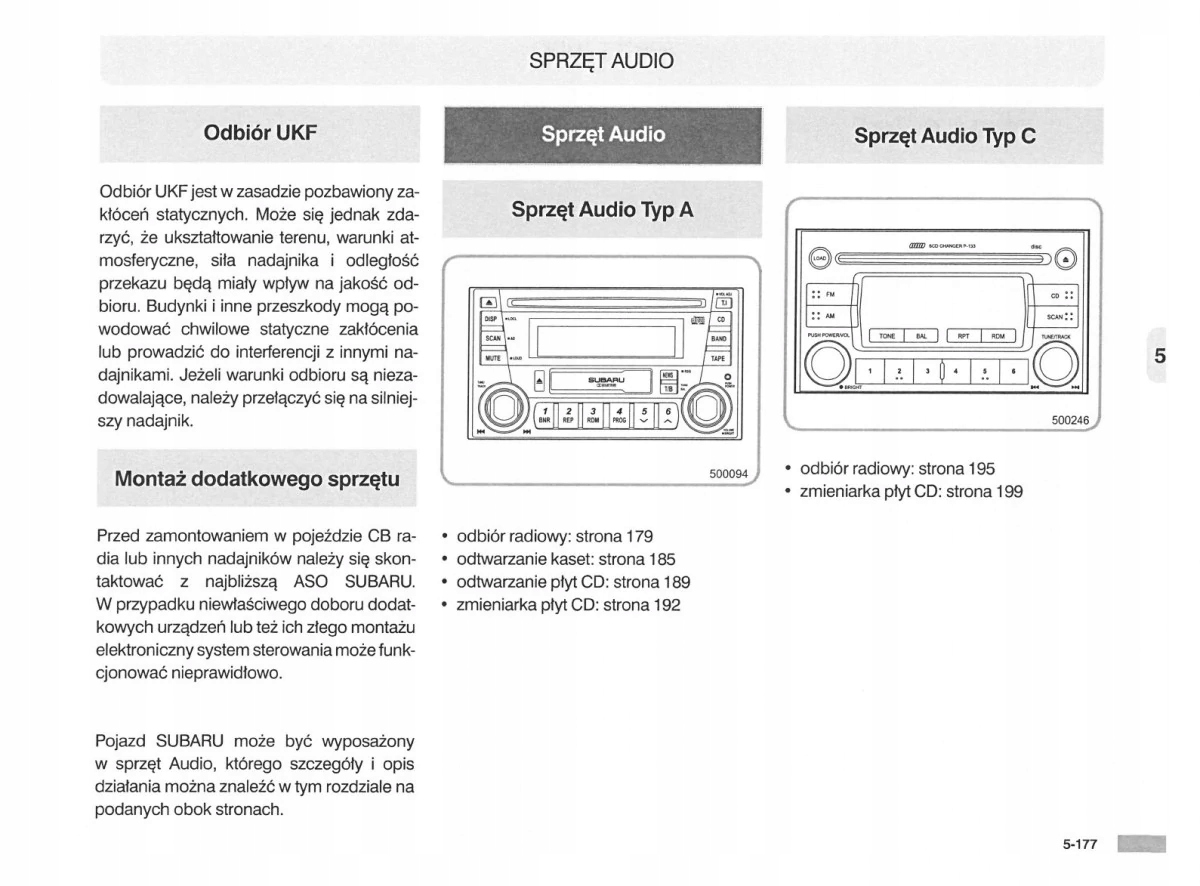 Руководство пользователя Subaru содержит все версии оборудования и полезную информацию о том, как эффективно и безопасно использовать автомобиль, например. - индикаторы, контрольные лампы открытия и закрытия - освещение и обзорность, сиденья, отсеки для хранения вещей, отопление, вентиляция, кондиционирование - вождение, советы по эксплуатации, обслуживание автомобиля - уровни жидкостей, проверка и долив, аварийные операции, замена колес, предохранителей, замена лампочек - технические данные... и многое другое, дающее ощущение безопасности и комфорта путешественников. Польское законодательство обязывает продавца приложить к автомобилю руководство по эксплуатации на польском языке. Руководство пользователя автомобиля новое, на польском языке.