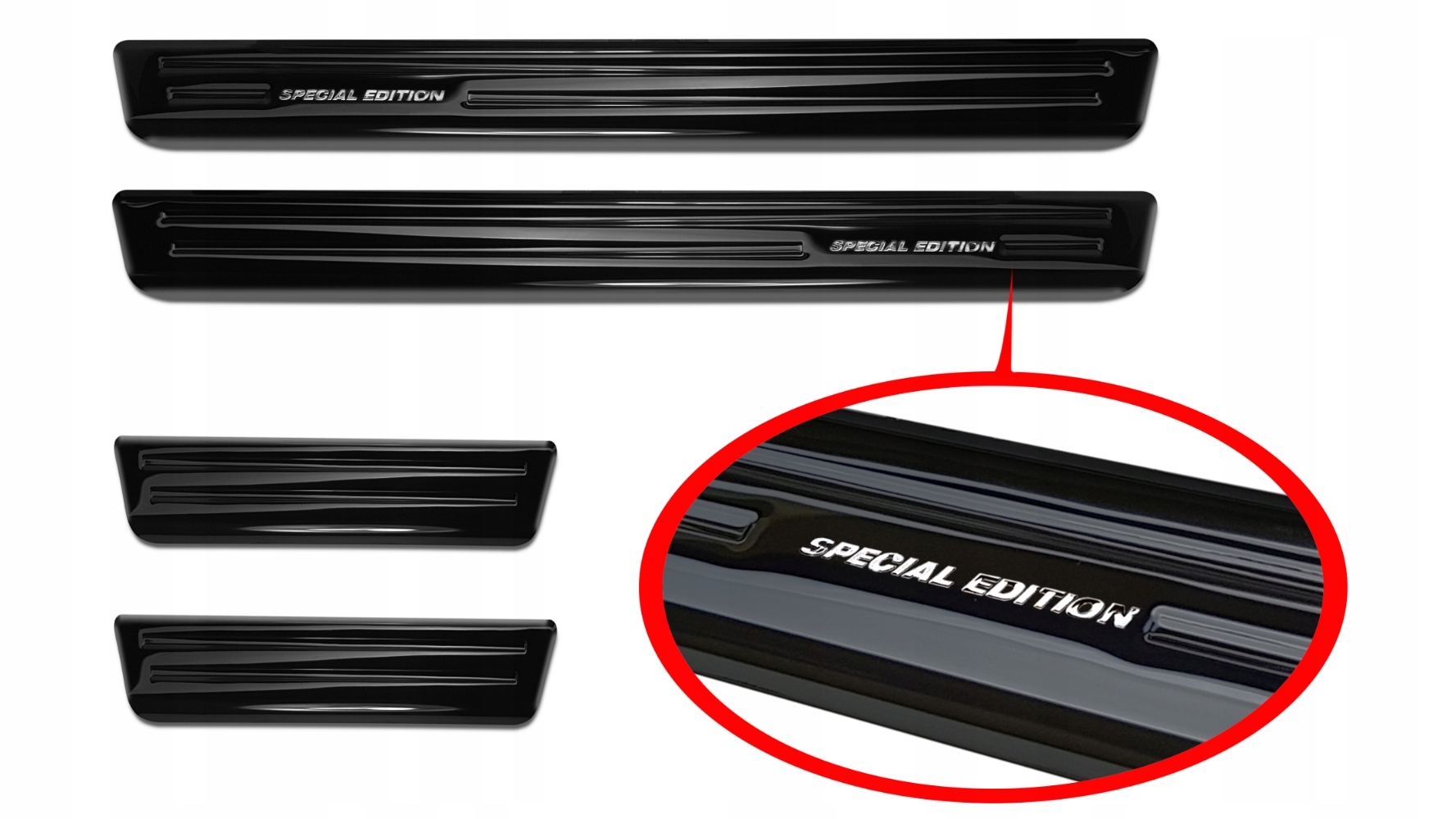 Полоски защищают краску на пороге автомобиля от царапин и повреждений при посадке и выезде. Более того, они являются оригинальным и элегантным дополнением интерьера любого автомобиля.